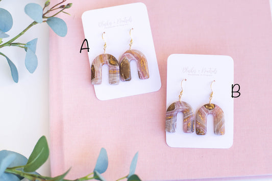 Brown and Gold Marble Arch Earrings