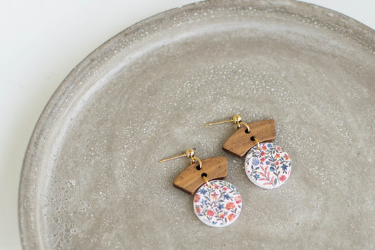 Floral Clay and Wood Earrings