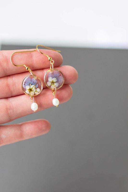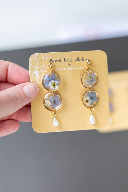 Regular price $27.00 USDRegular priceUnit price / per$0.00 USDSale price $27.00 USDPressed Forget Me Not and Pearl Earrings
