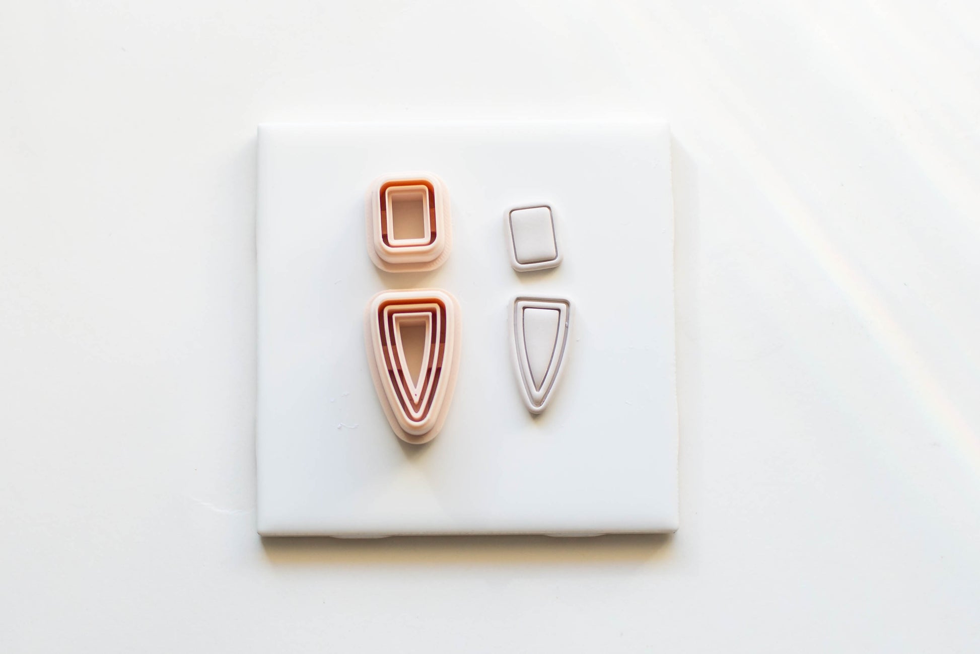 Rectangle cutter measures approximately 0.75 of an inch tall and the larger cutter measures about 1.25 inches tall
