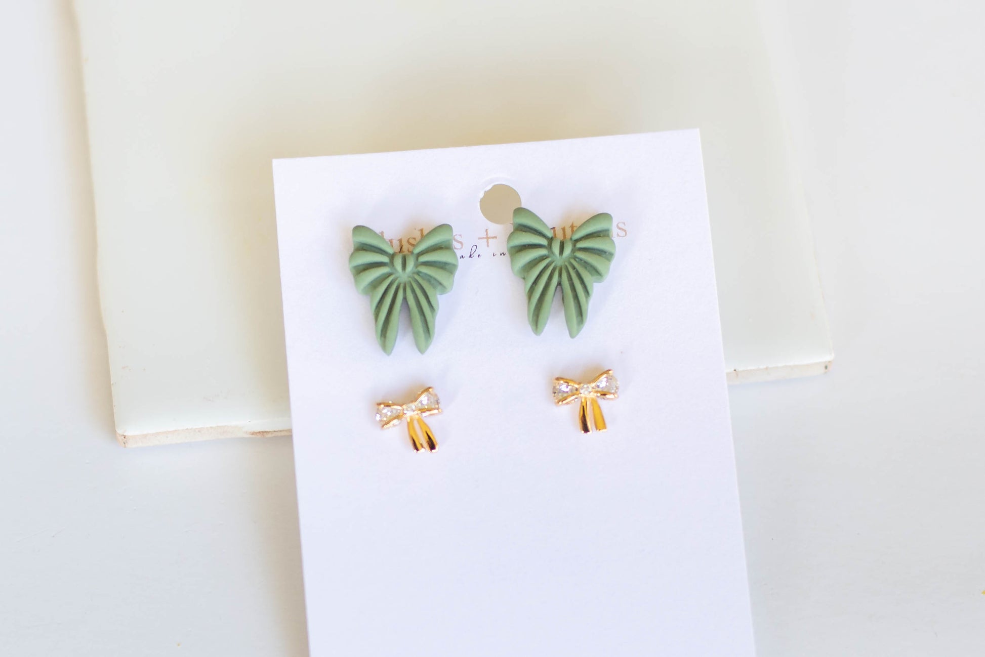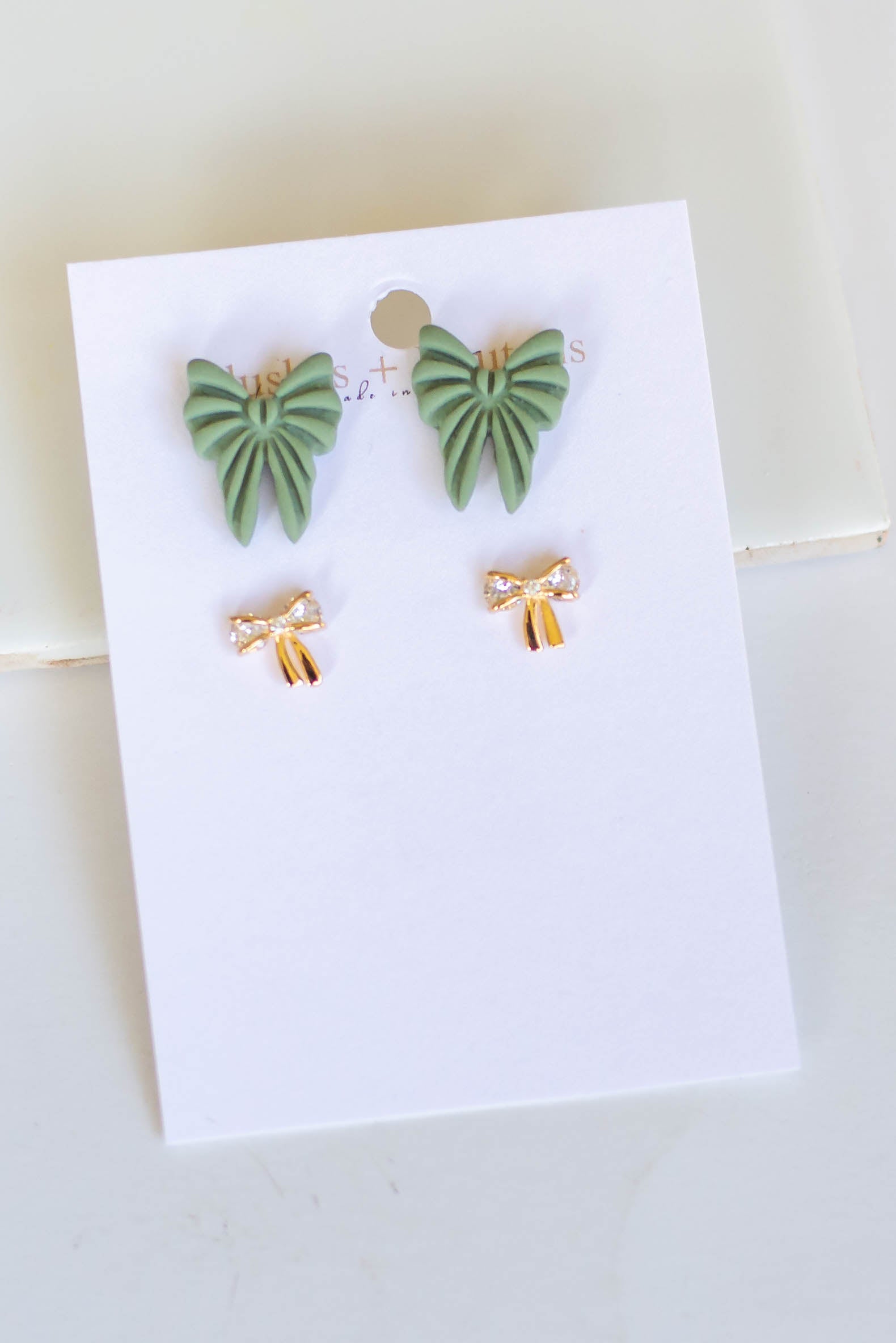 If you are looking for beautiful, lightweight jewelry, then this bow stud pack will make your day! Our earrings are a perfect addition to any outfit and are lightweight for easy wearing. Our clay is carefully chosen and baked to provide some flexibility, making your earrings more durable. Simple and gorgeous, they provide effortless style.