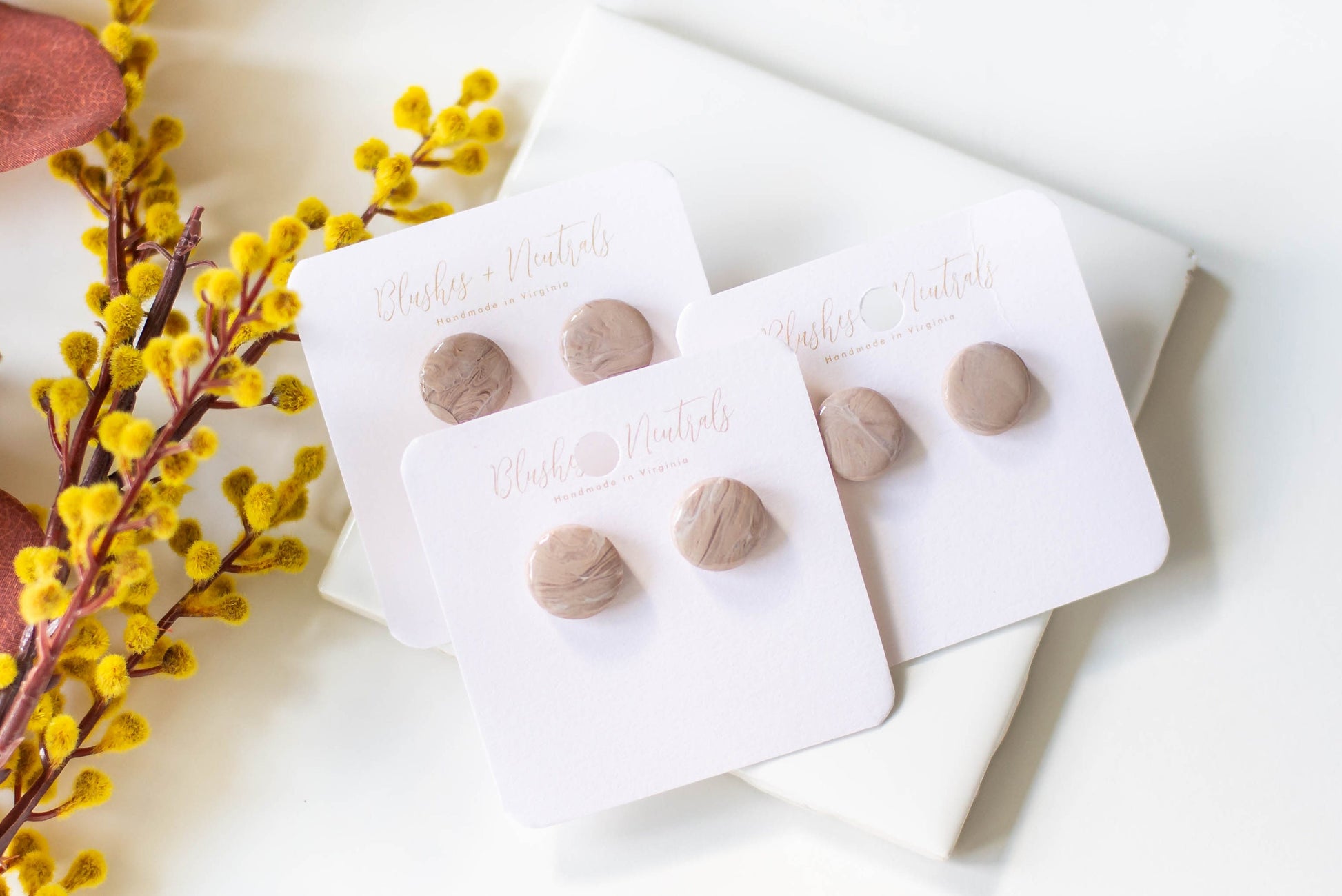 If you are looking for beautiful, lightweight jewelry, then these brown marble clay stud earrings will make your day! Our earrings are a perfect addition to any outfit and are especially lightweight for easy wearing. Our clay is carefully chosen and baked to provide some flexibility, making your earrings more durable. This listing is for one pair of clay studs. They are hand-coated with crystal clear resin to give them that gorgeous shine.