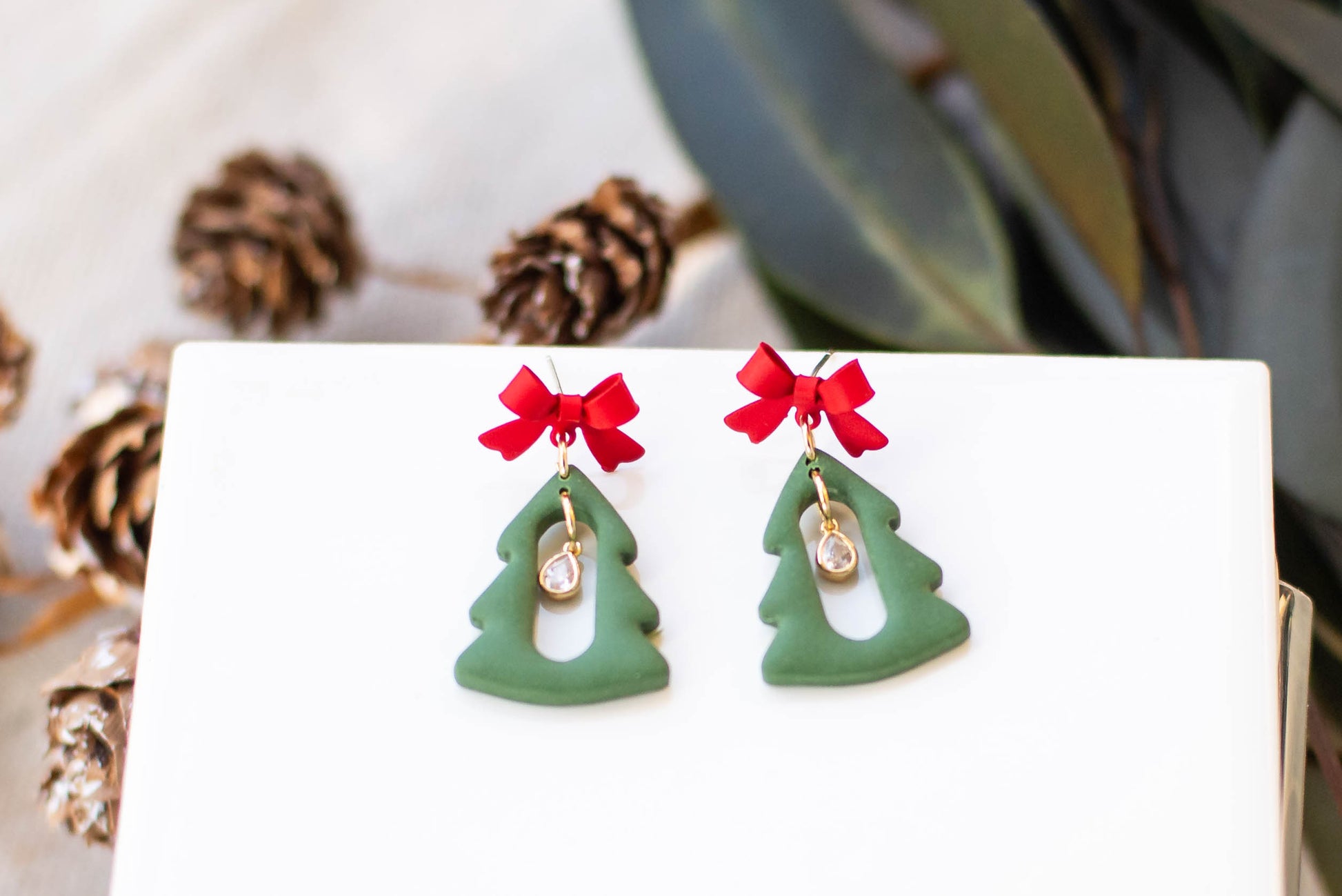 If you are looking for beautiful, lightweight jewelry, then these Christmas tree earrings will make your day! Our earrings are a perfect addition to any outfit and are especially lightweight for easy wearing. Our clay is carefully chosen and baked to provide some flexibility, making your earrings more durable.