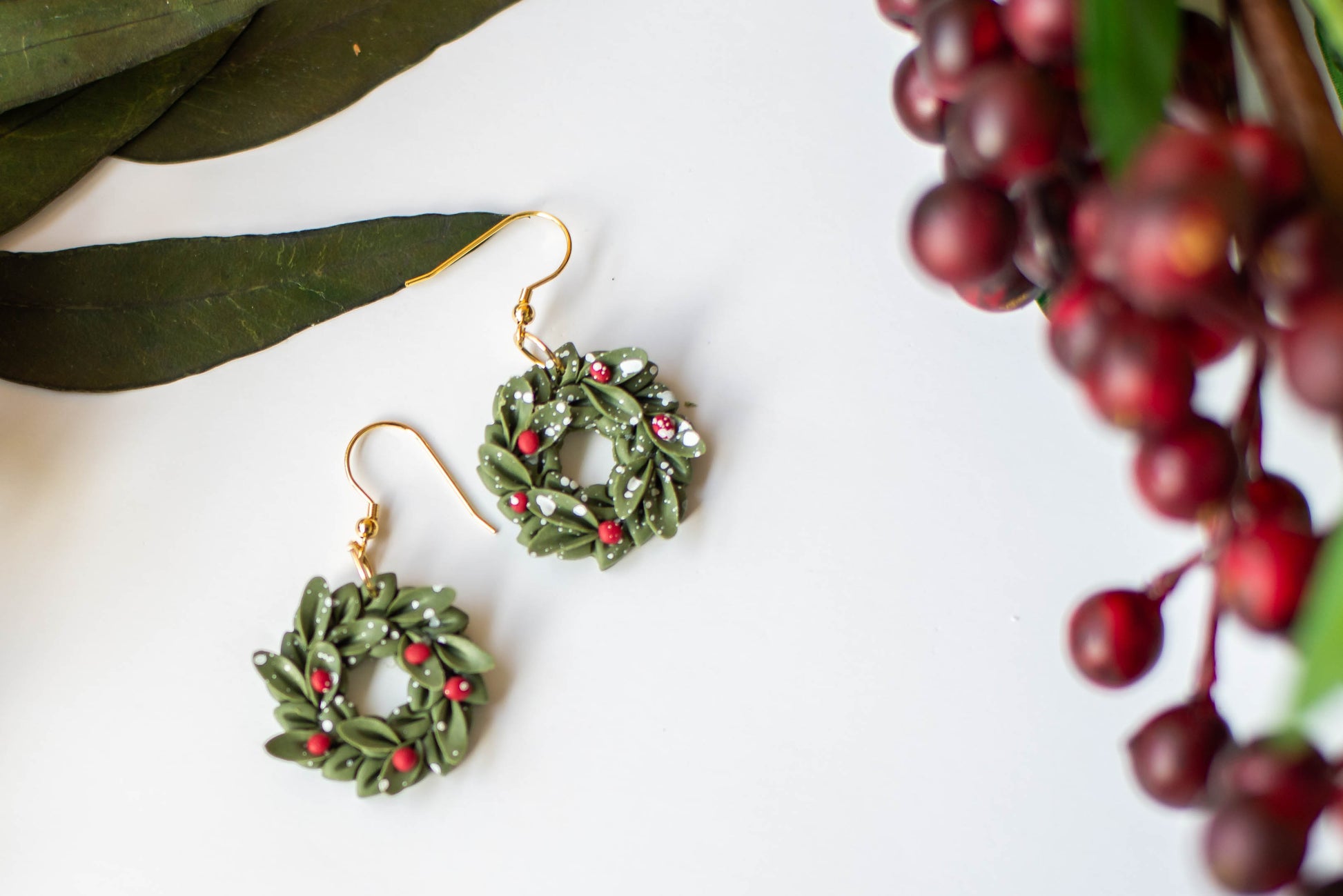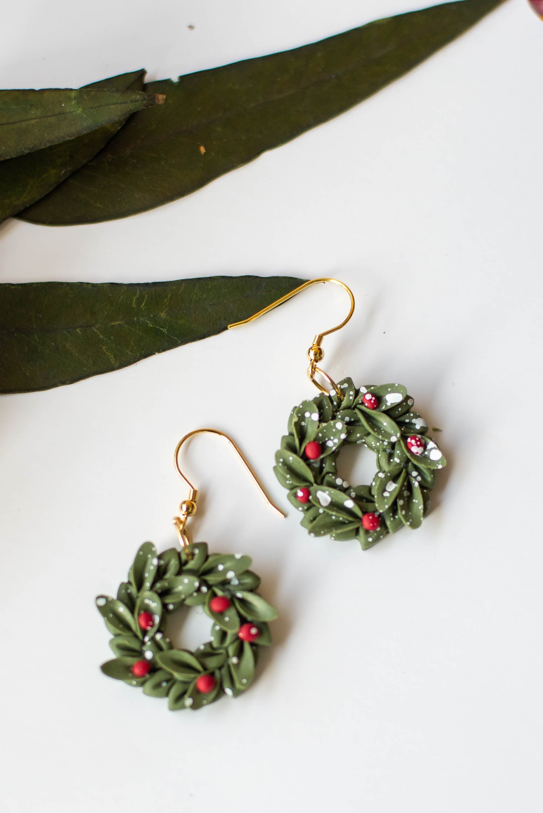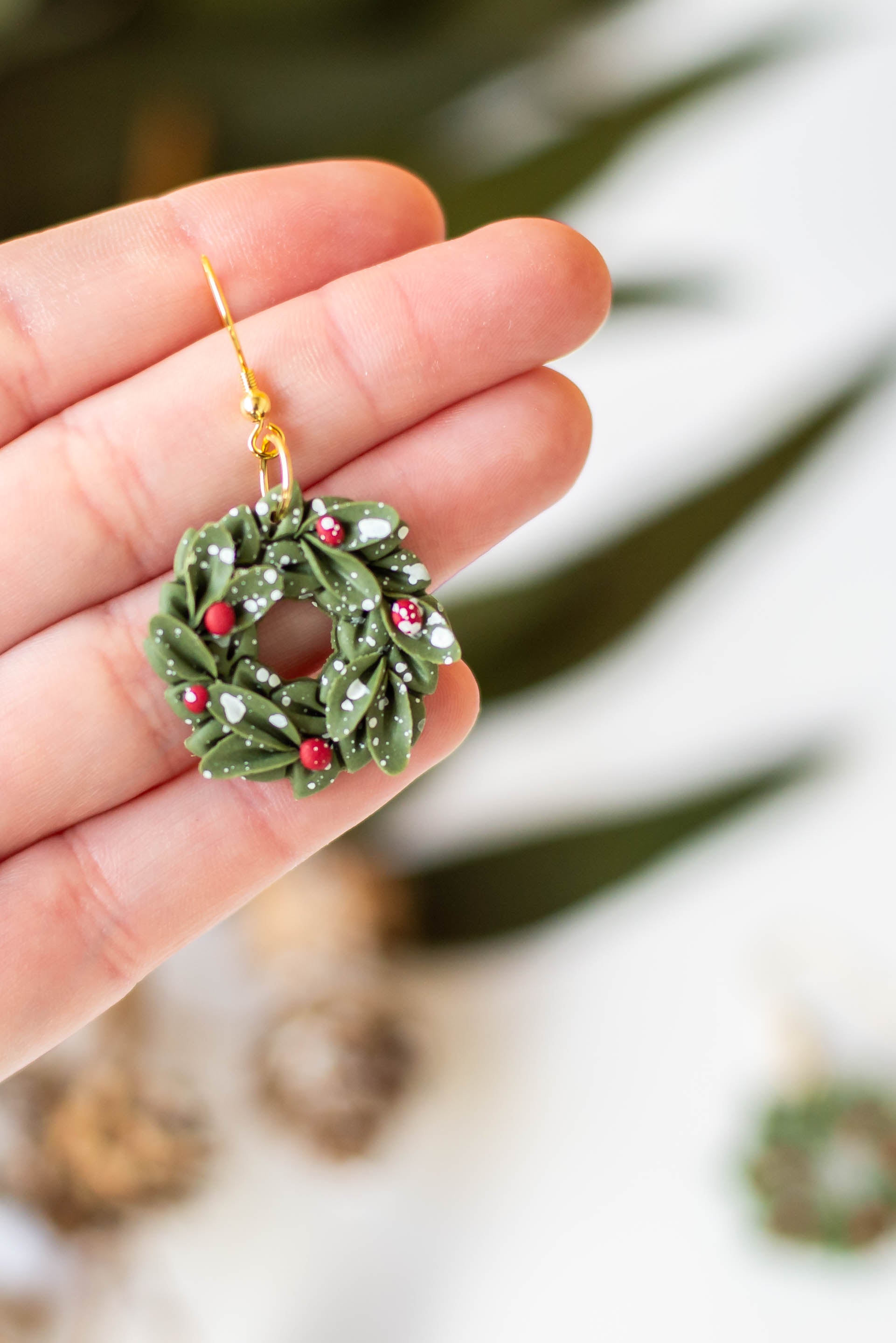If you are looking for beautiful, lightweight jewelry, then these Christmas Wreath Clay Dangles will make your day! Our earrings are a perfect addition to any outfit and are especially lightweight for easy wearing. Our clay is carefully chosen and baked to provide some flexibility, making your earrings more durable.