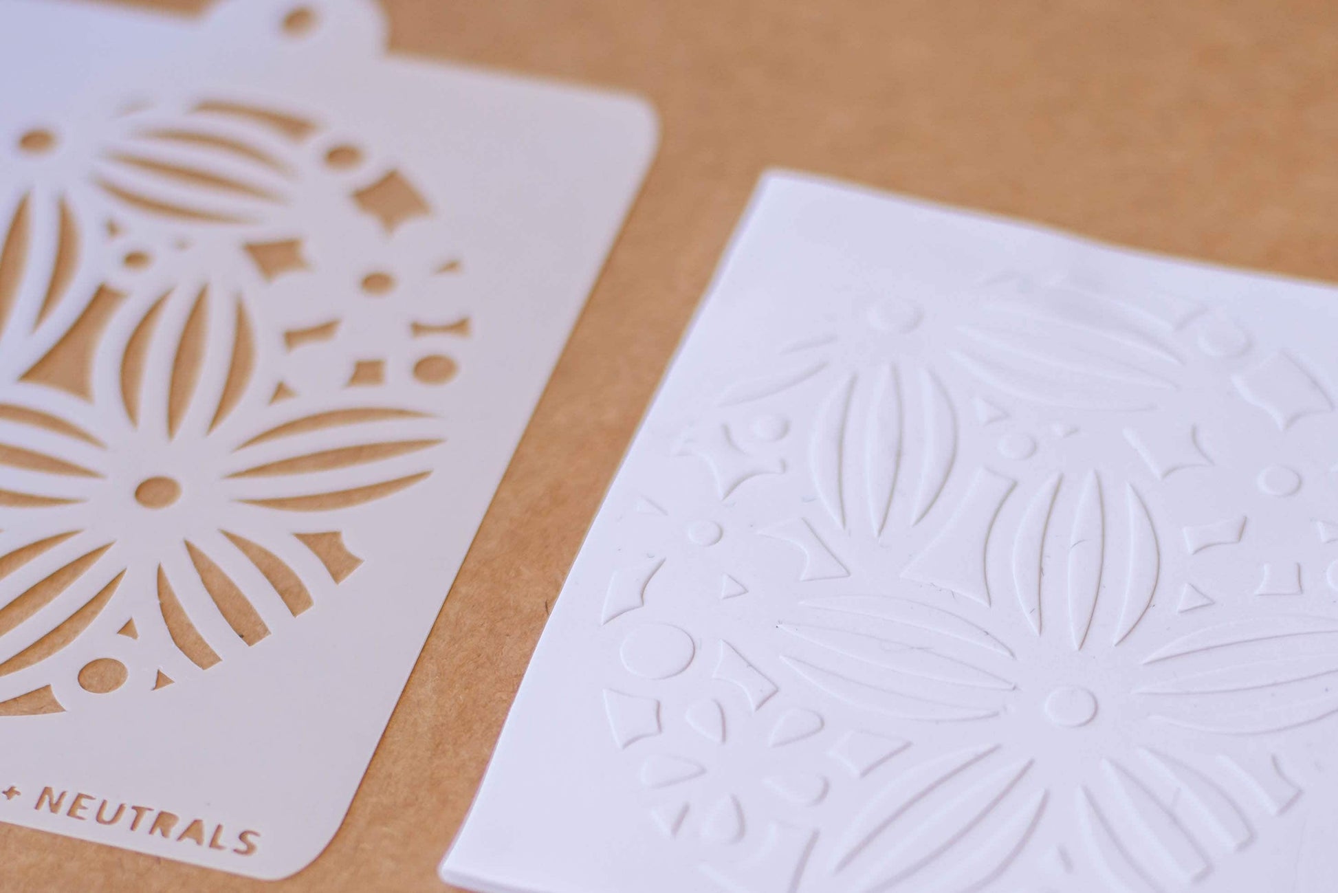 Hey there Maker, you're going to love using our clay stencils to add gorgeous texture to your art. Use the stencil to roll texture onto your clay slab, add color with mica powder or pastels, or do both! Then use our sharp clay cutters to create the perfect earrings