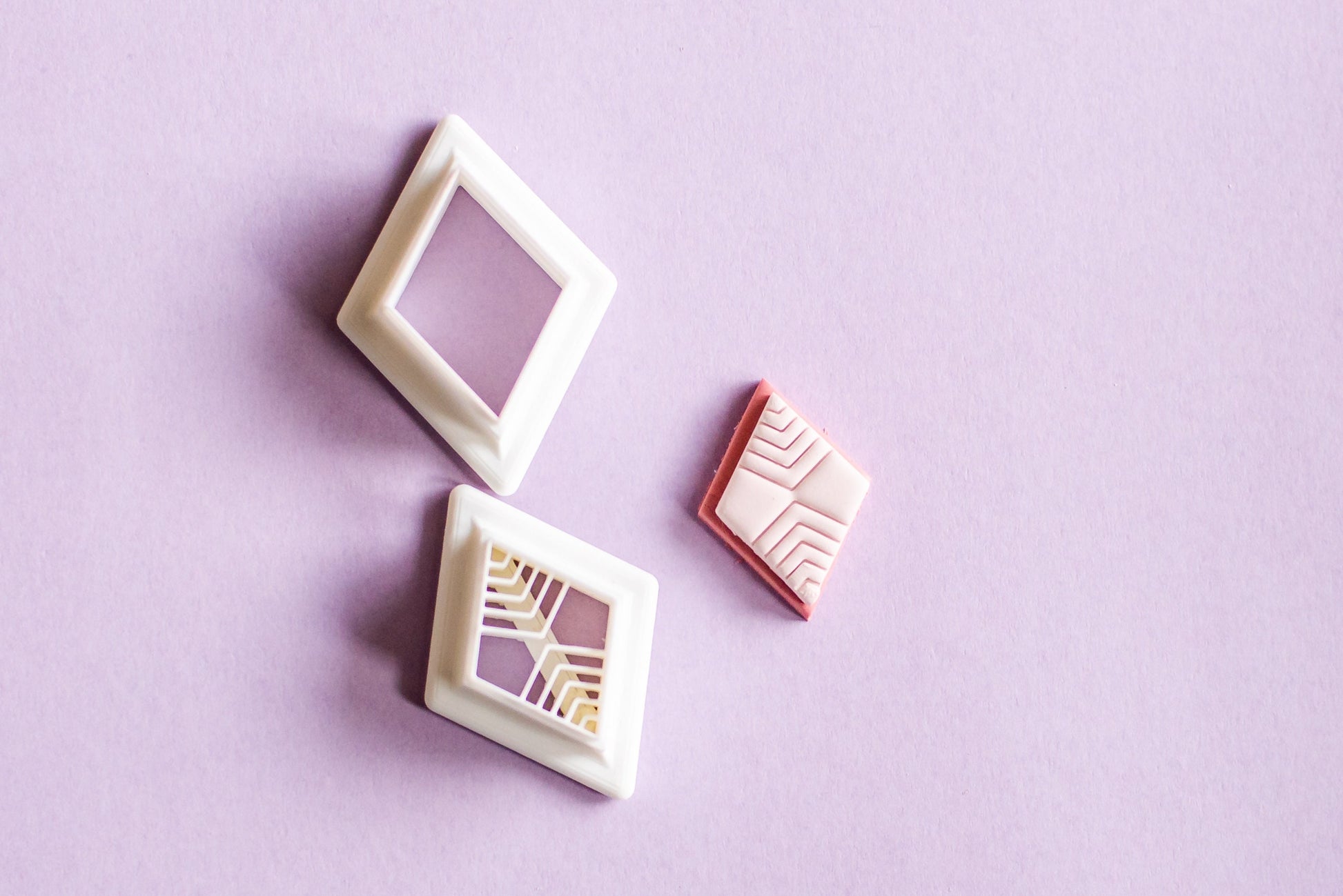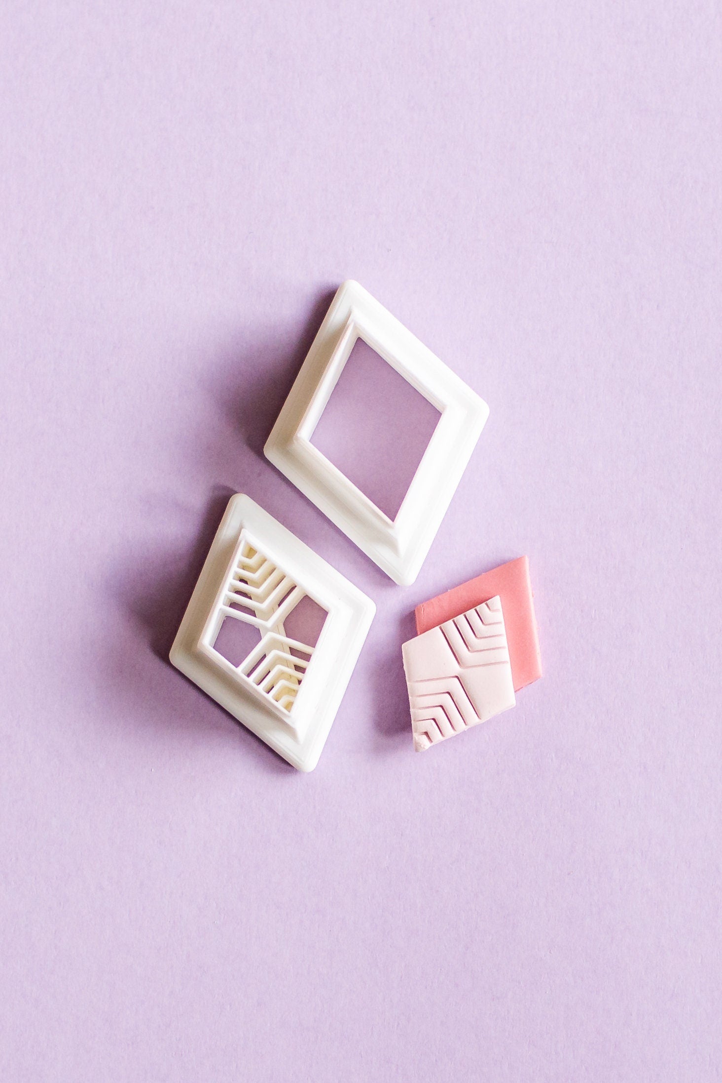 Hey Maker! If you love working with polymer clay and are an earring maker, like me, then these diamond shaped cutters will make your day! The smaller cutter is an embossing cutter- perfect for adding texture!
