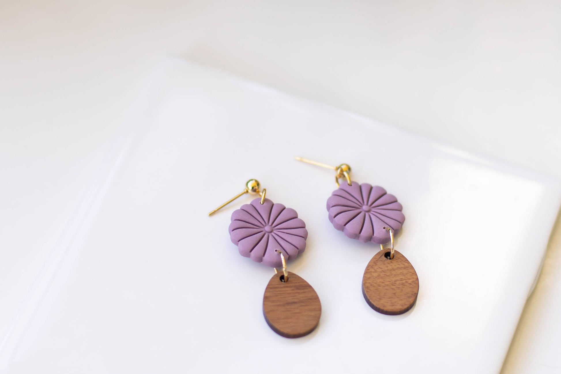 If you are looking for beautiful, lightweight jewelry, then these dusty purple clay and wood flower earrings will make your day! Our earrings are a perfect addition to any outfit and are especially lightweight for easy wearing. Our clay is carefully chosen and baked to provide some flexibility, making your earrings more durable.