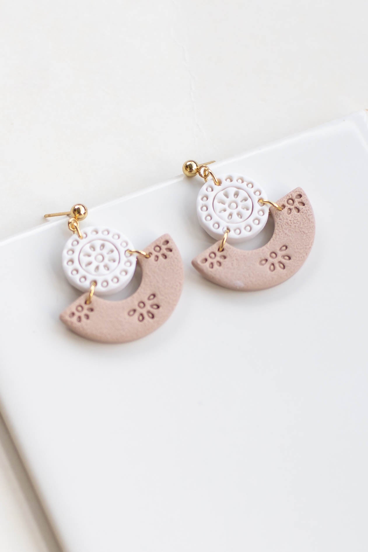 If you are looking for beautiful, lightweight jewelry, then these embossed neutral clay earrings will make your day! Our earrings are a perfect addition to any outfit and are lightweight for easy wearing. Our clay is carefully chosen and baked to provide some flexibility, making your earrings more durable. Simple and gorgeous, they provide effortless style.