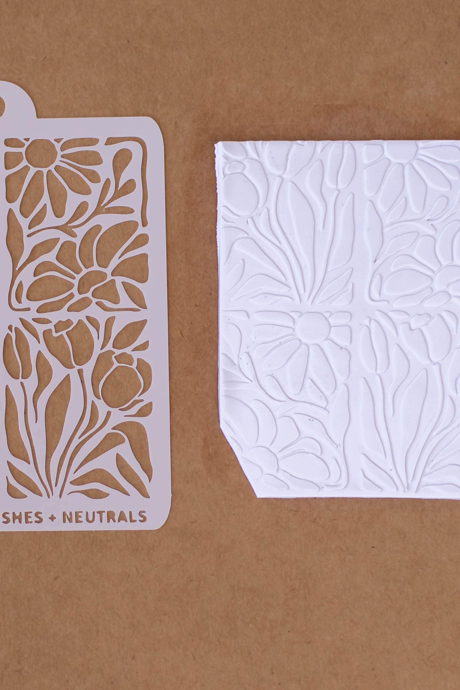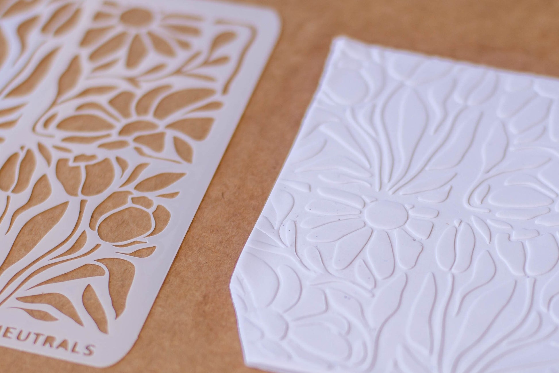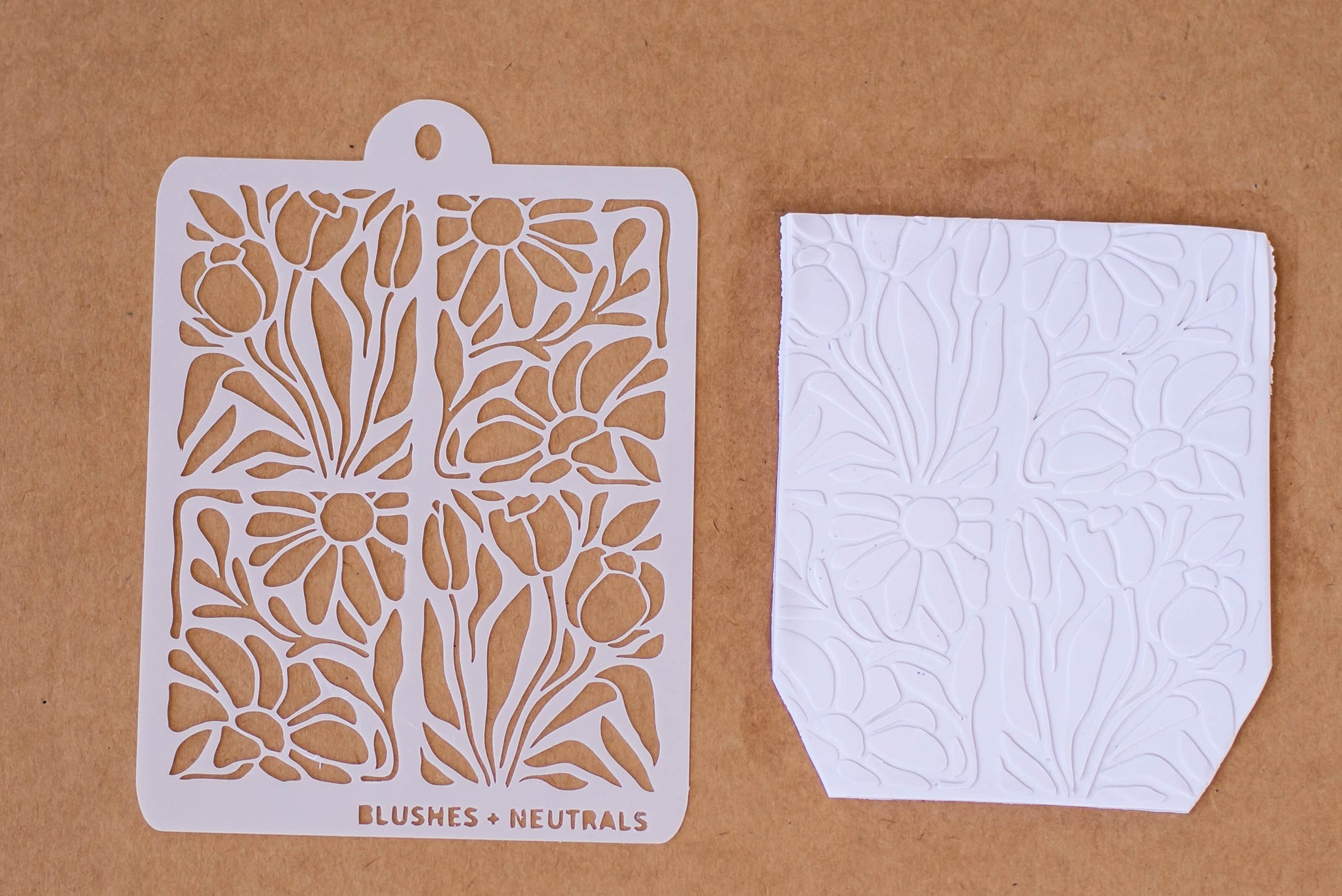 Hey there Maker, you're going to love using our clay stencils to add gorgeous texture to your art. Use the stencil to roll texture onto your clay slab, add color with mica powder or pastels, or do both! Then use our sharp clay cutters to create the perfect earrings