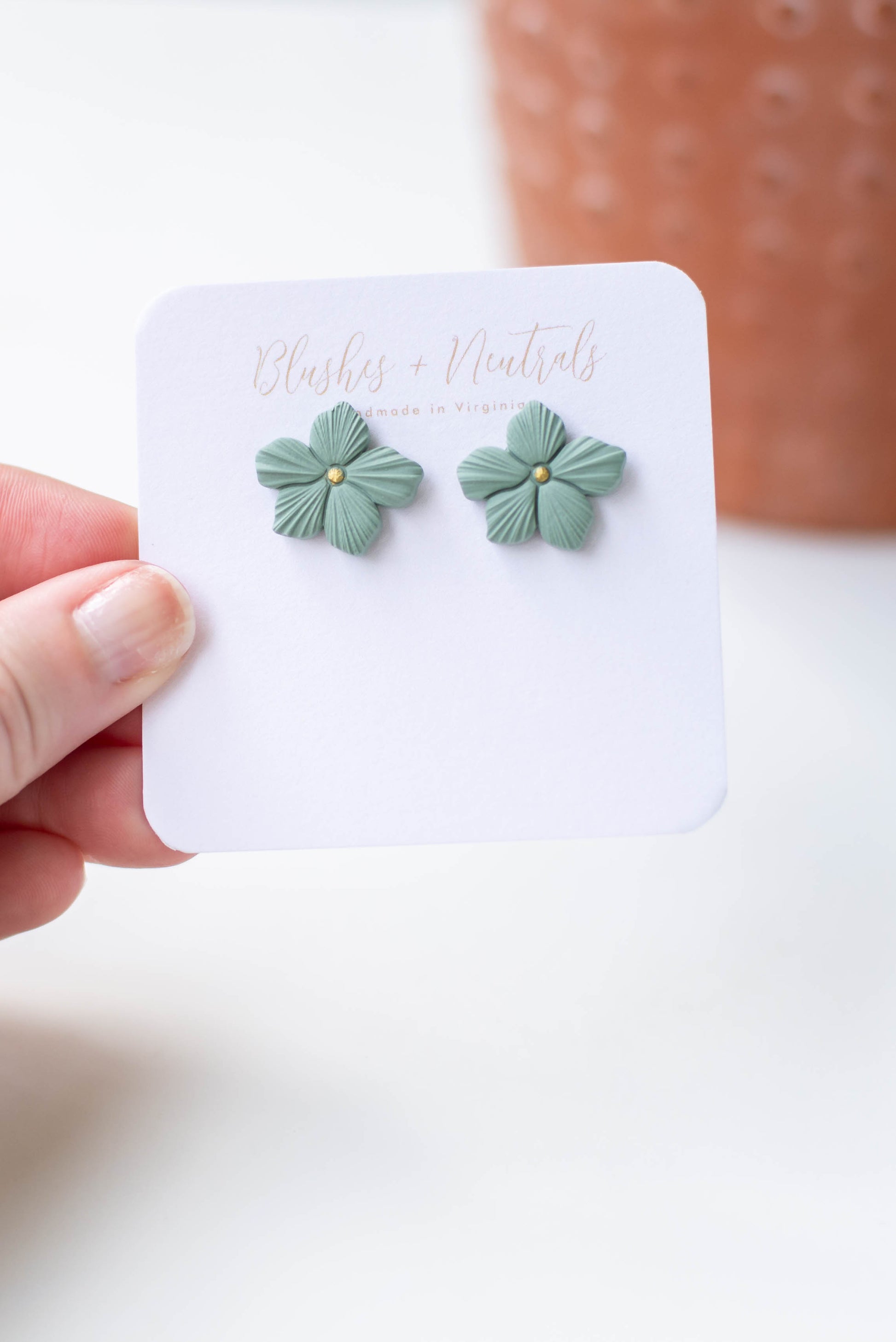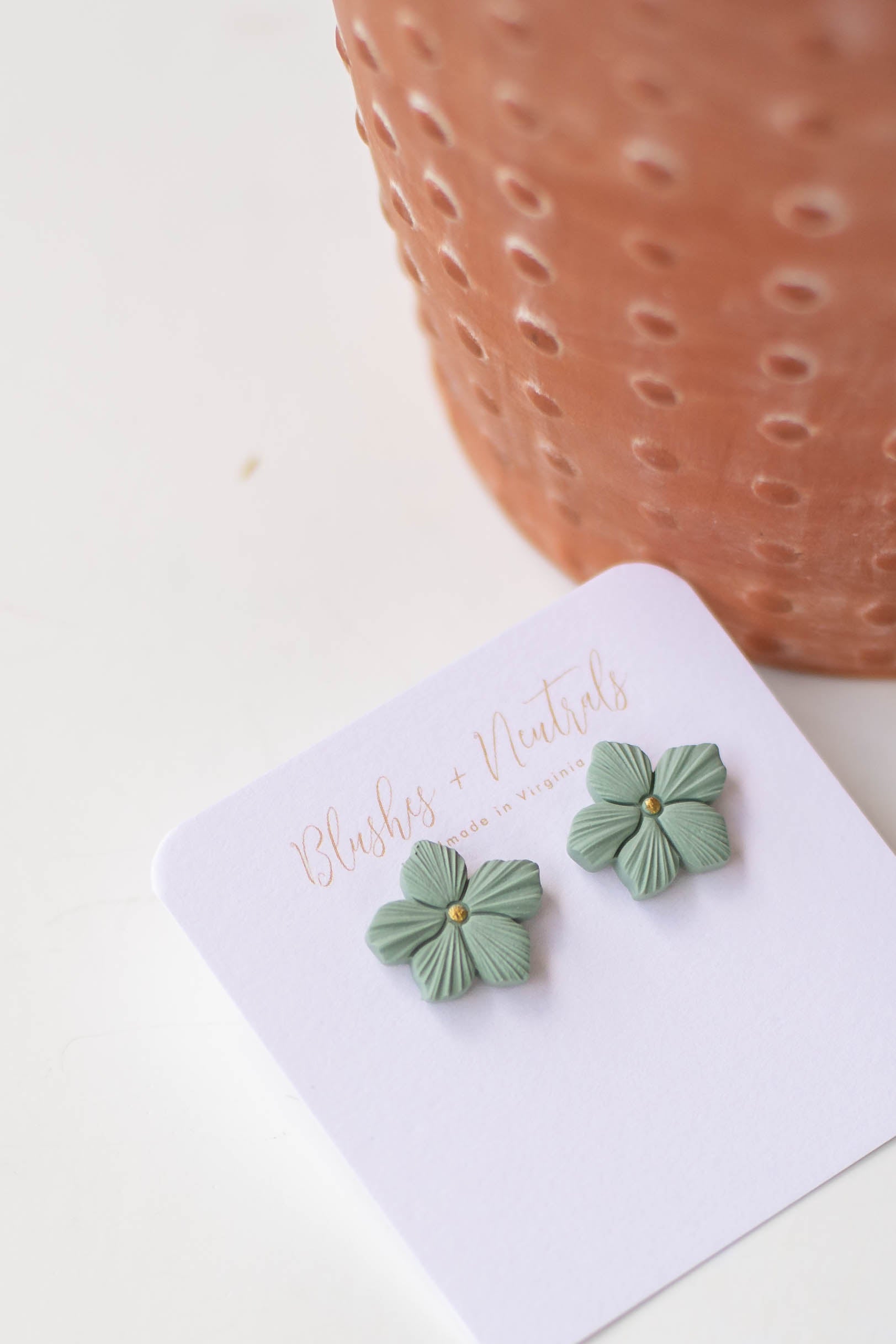 If you are looking for beautiful, lightweight jewelry, and your new favorite studs, these clay flower stud earrings will make your day! Our earrings are a perfect addition to any outfit and are extremely lightweight for easy wearing. Our clay is carefully chosen and baked to provide some flexibility, making our earrings more durable. Simple and gorgeous, they provide effortless style. Our meticulous attention to detail, handmade process, and high quality-gold plated components, set us apart from other clay earrings.