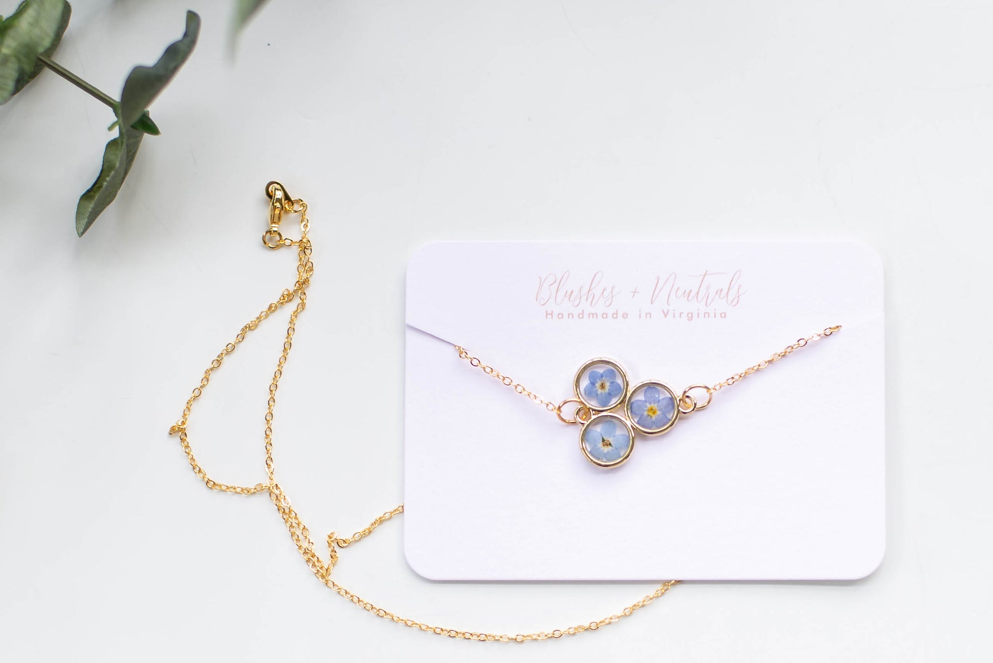 Forget Me Not Pressed Flower Necklace- 16K Gold