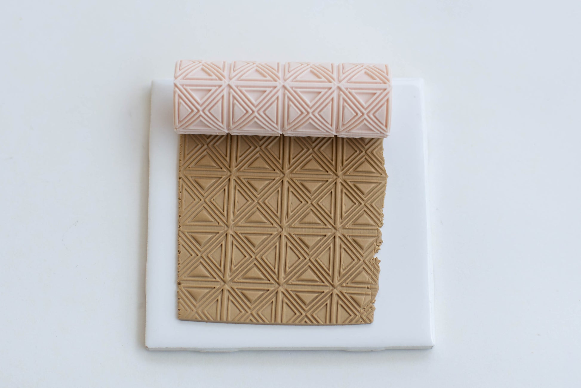 Ensure your clay is not sticky, using firm pressure, roll down your slab of clay to reveal a beautiful texture