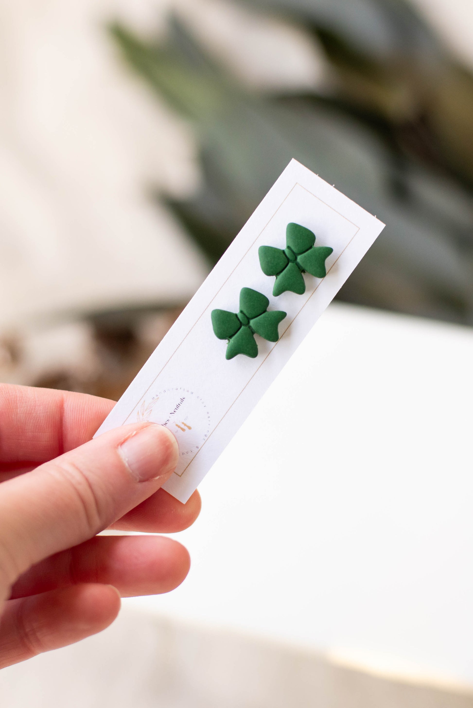 If you are looking for beautiful, lightweight jewelry, then these green bow stud earrings will make your day! Our earrings are a perfect addition to any outfit and are especially lightweight for easy wearing. Our clay is carefully chosen and baked to provide some flexibility, making your earrings more durable.