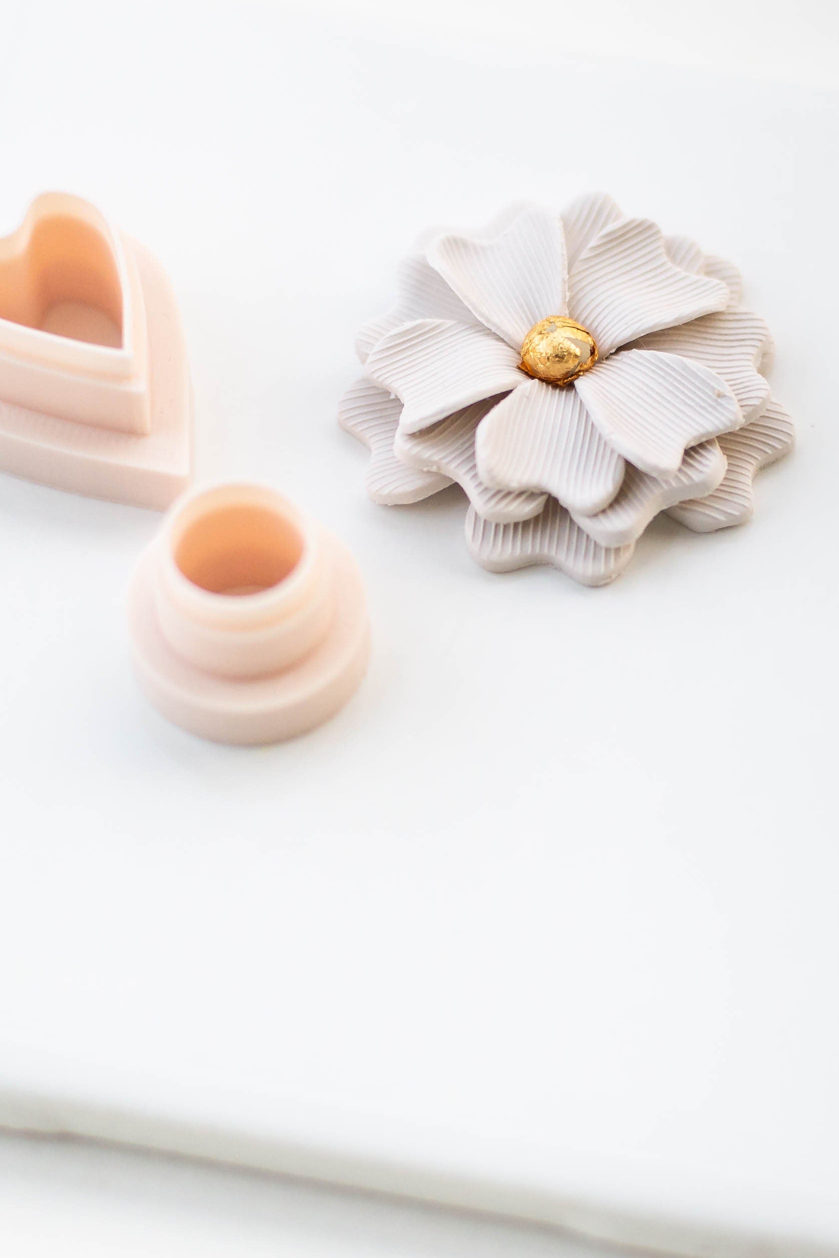 **This listing is for one petal cutter and a circle base. Look through the photos to see what you can create using this set :). Note that in the finished product photo, I added texture to my flower. Get creative!