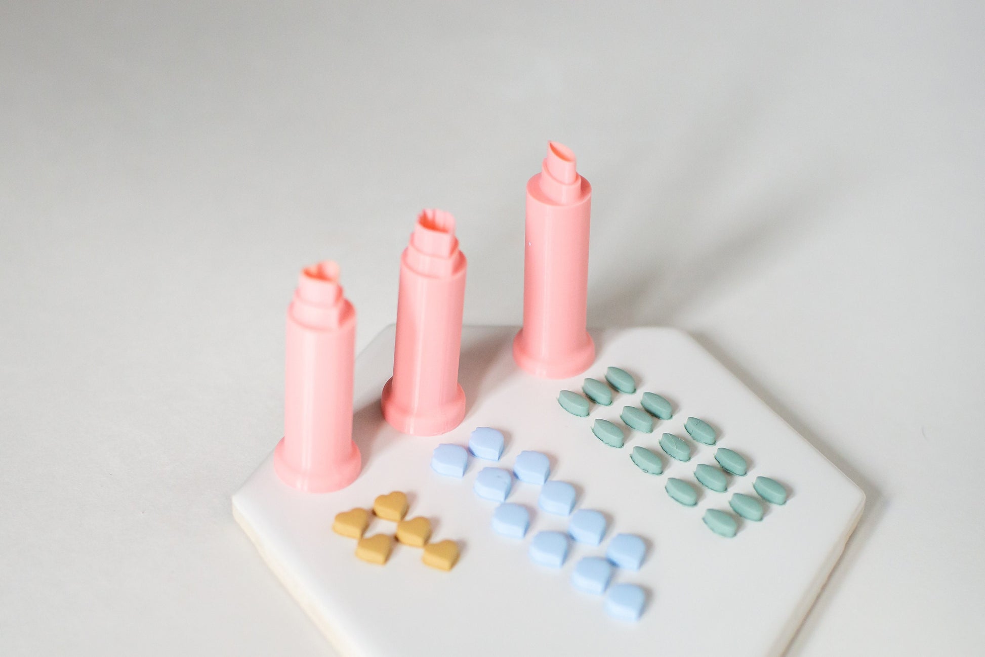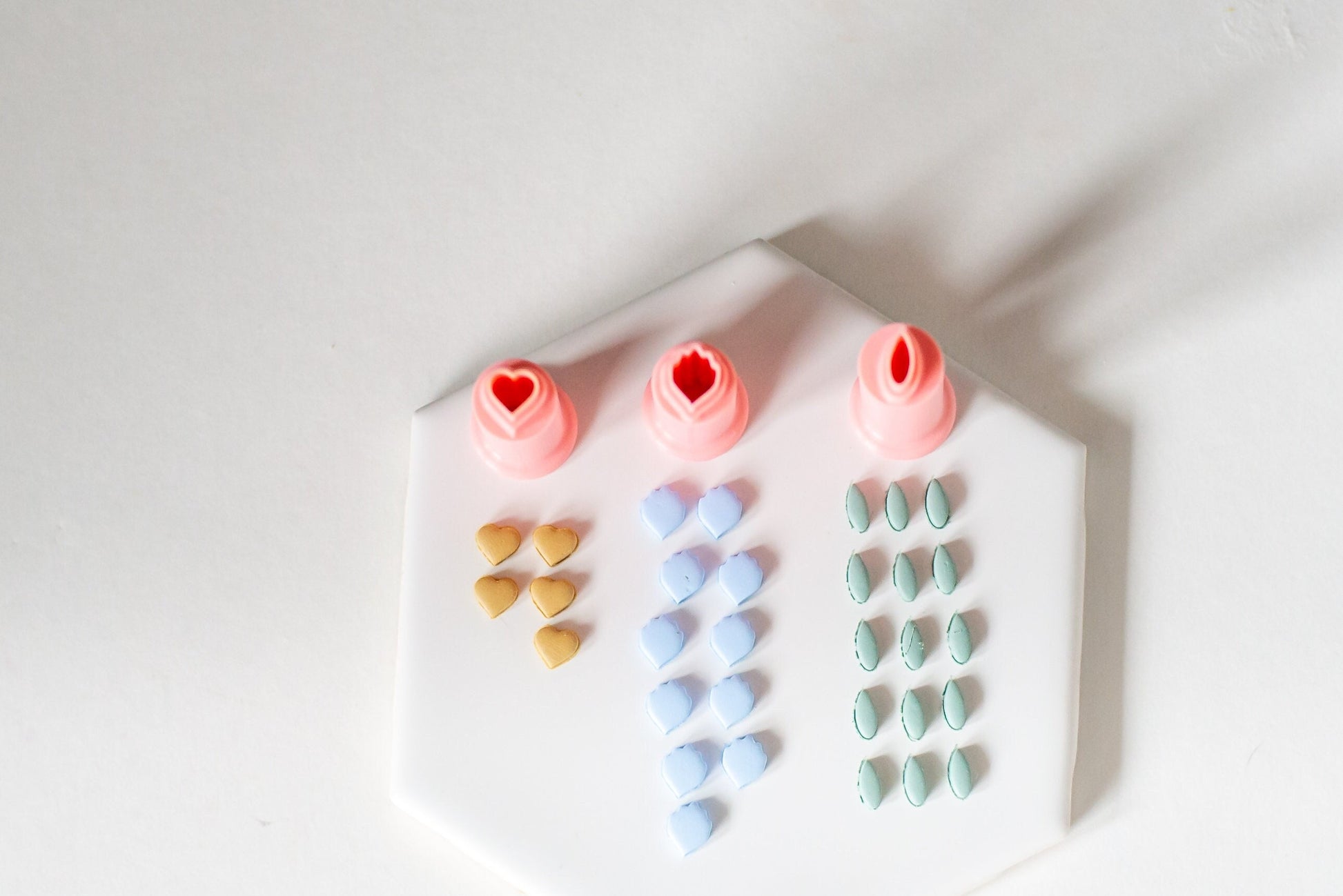 Hey Maker! If you love working with polymer clay and are an earring maker, like me, then this micro cutter bundle is about to make your life a whole lot easier. We designed these to help makers get the most efficient use of their time! You will receive all 3 micro cutters pictured here- heart, petal, and leaf.