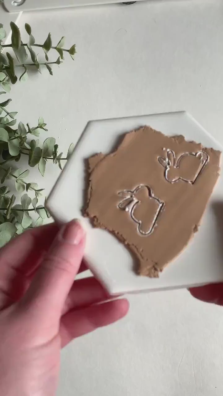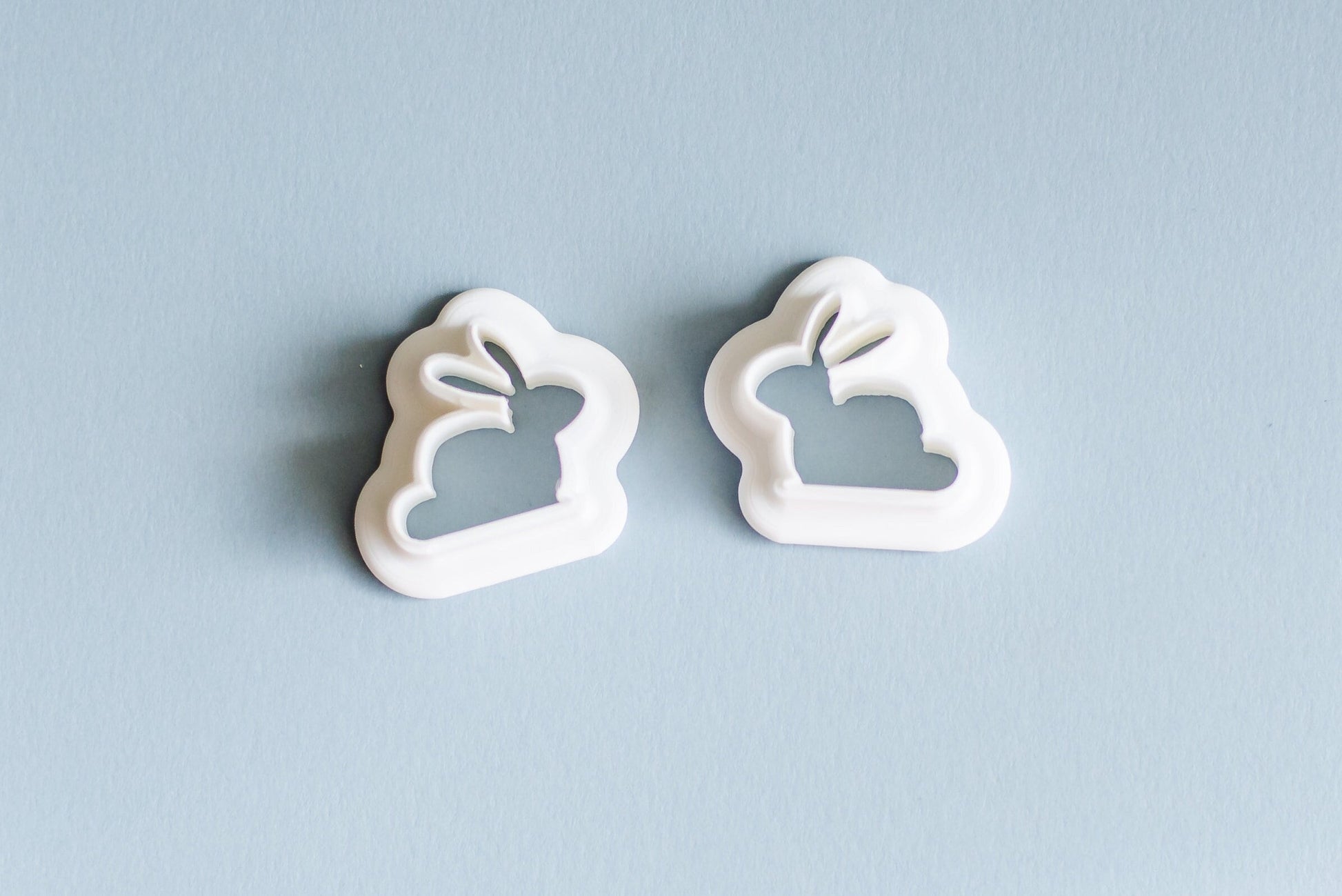 Hey Maker! If you love working with polymer clay and are an earring maker, like me, then these mirrored bunny cutter set will make your day! This listing is for a set of 2 cutters: mirror images.