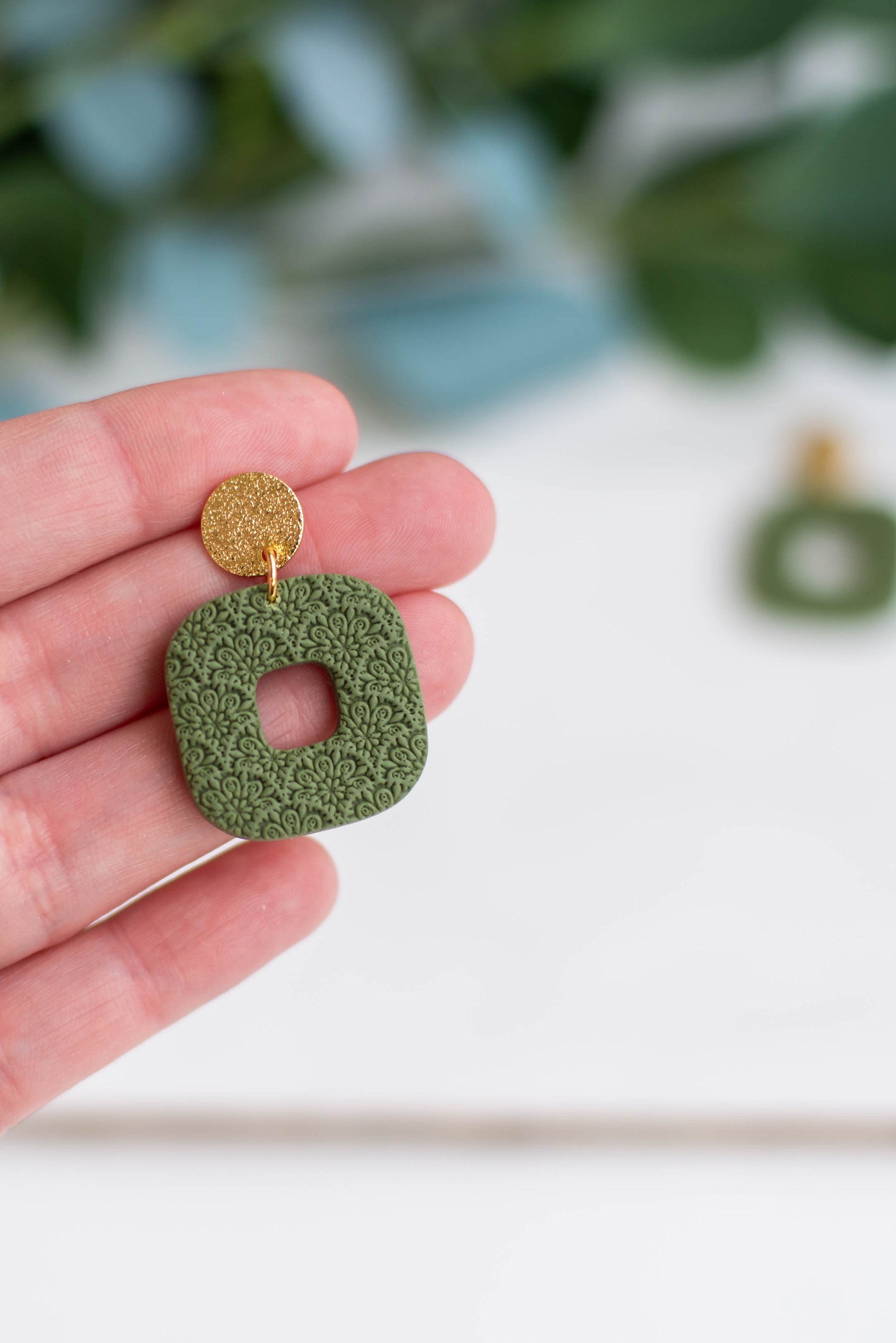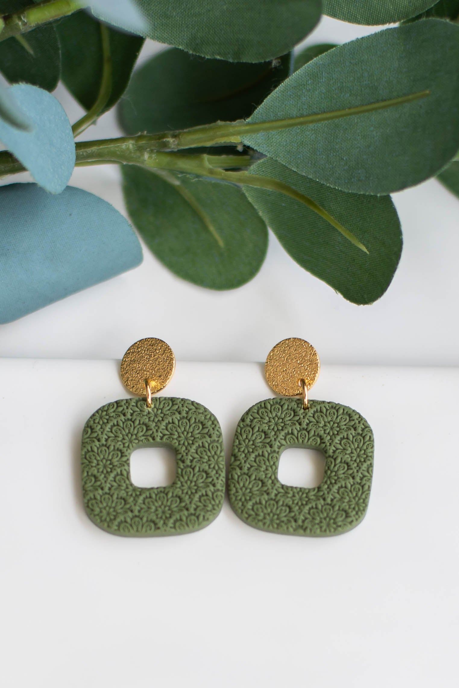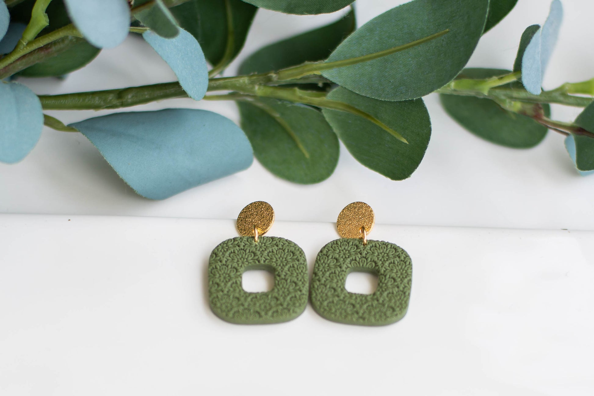 If you are looking for beautiful, lightweight jewelry, then these olive textured square dangles will make your day! Our earrings are a perfect addition to any outfit and are lightweight for easy wearing. Our clay is carefully chosen and baked to provide some flexibility, making our earrings more durable. With our carefully sourced hypoallergenic components, sensitivities are a thing of the past!