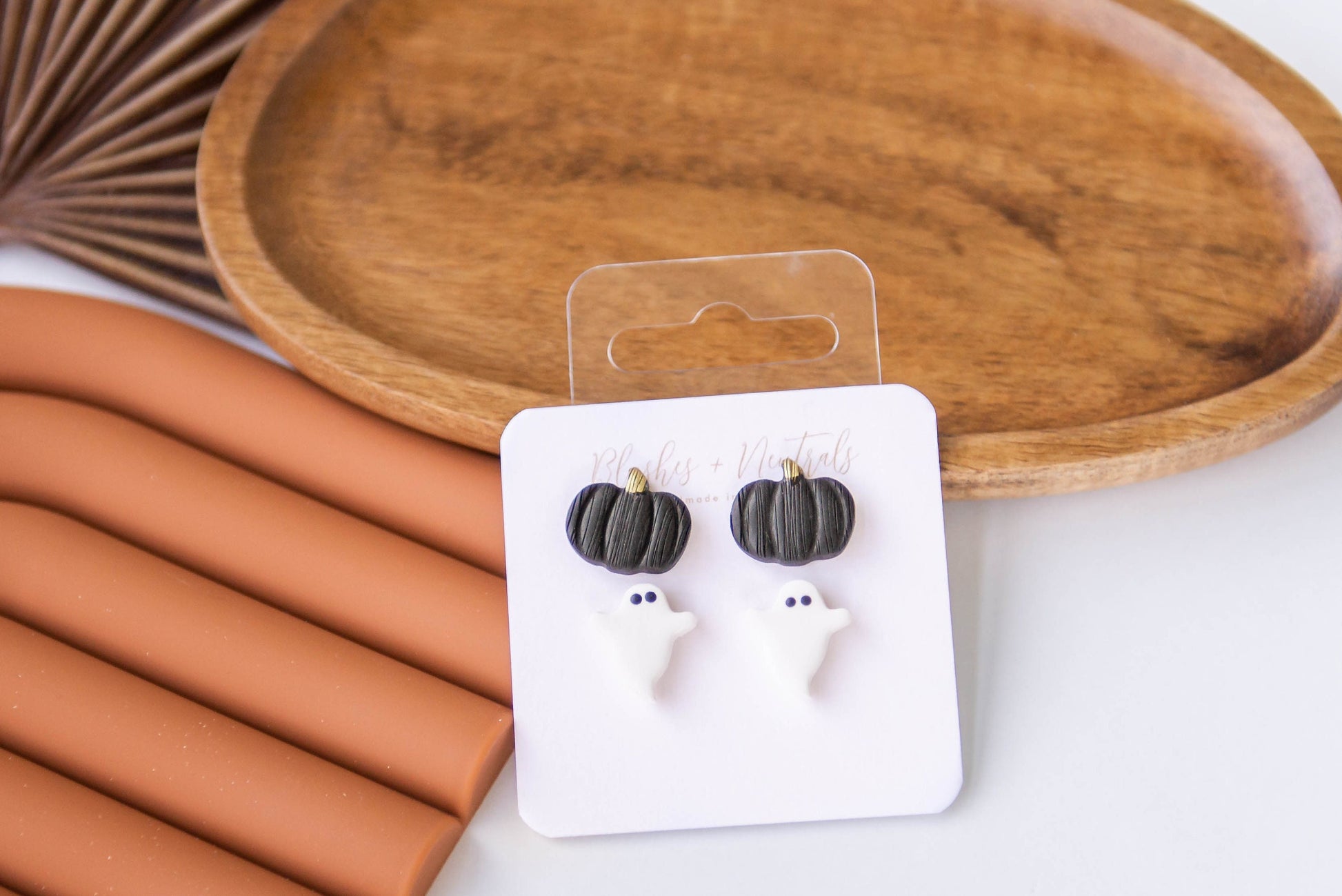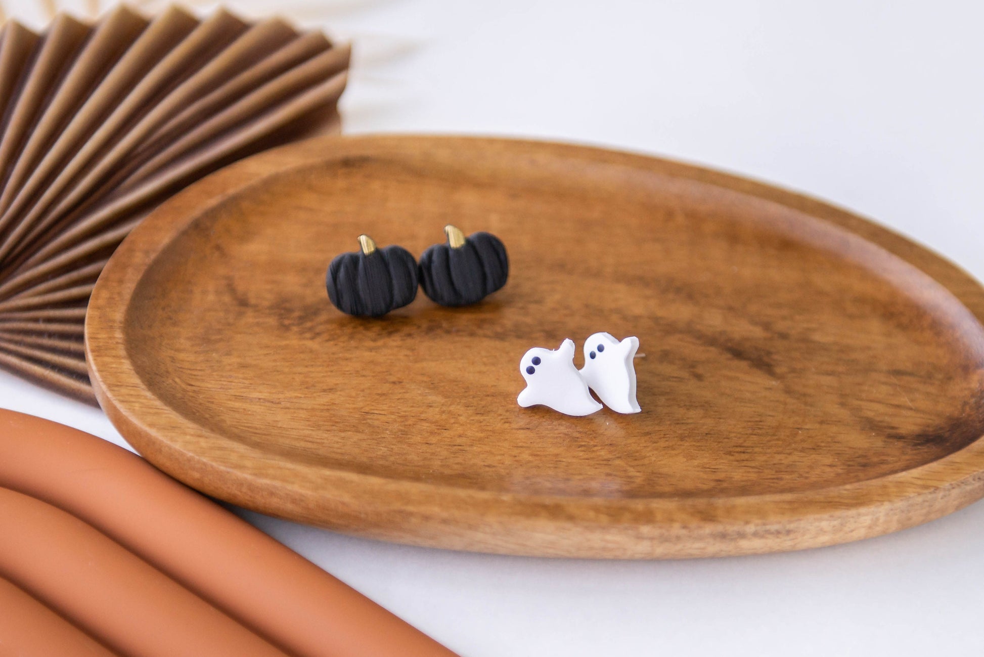 If you are looking for beautiful, lightweight jewelry, then this pumpkin and ghost stud pack will make your day! Our earrings are a perfect addition to any outfit and are especially lightweight for easy wearing. Our clay is carefully chosen and baked to provide some flexibility, making your earrings more durable.