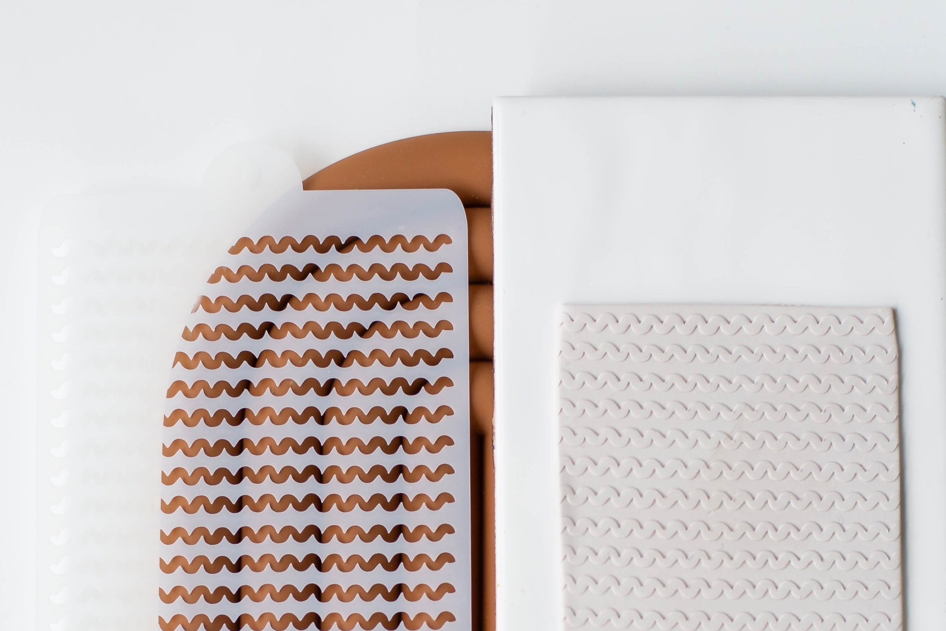 Hey there Maker, you're going to love using our clay stencils to add gorgeous texture to your art. Use the stencil to roll texture onto your clay slab, add color with mica powder or pastels, or do both! Then use our sharp clay cutters to create the perfect earrings