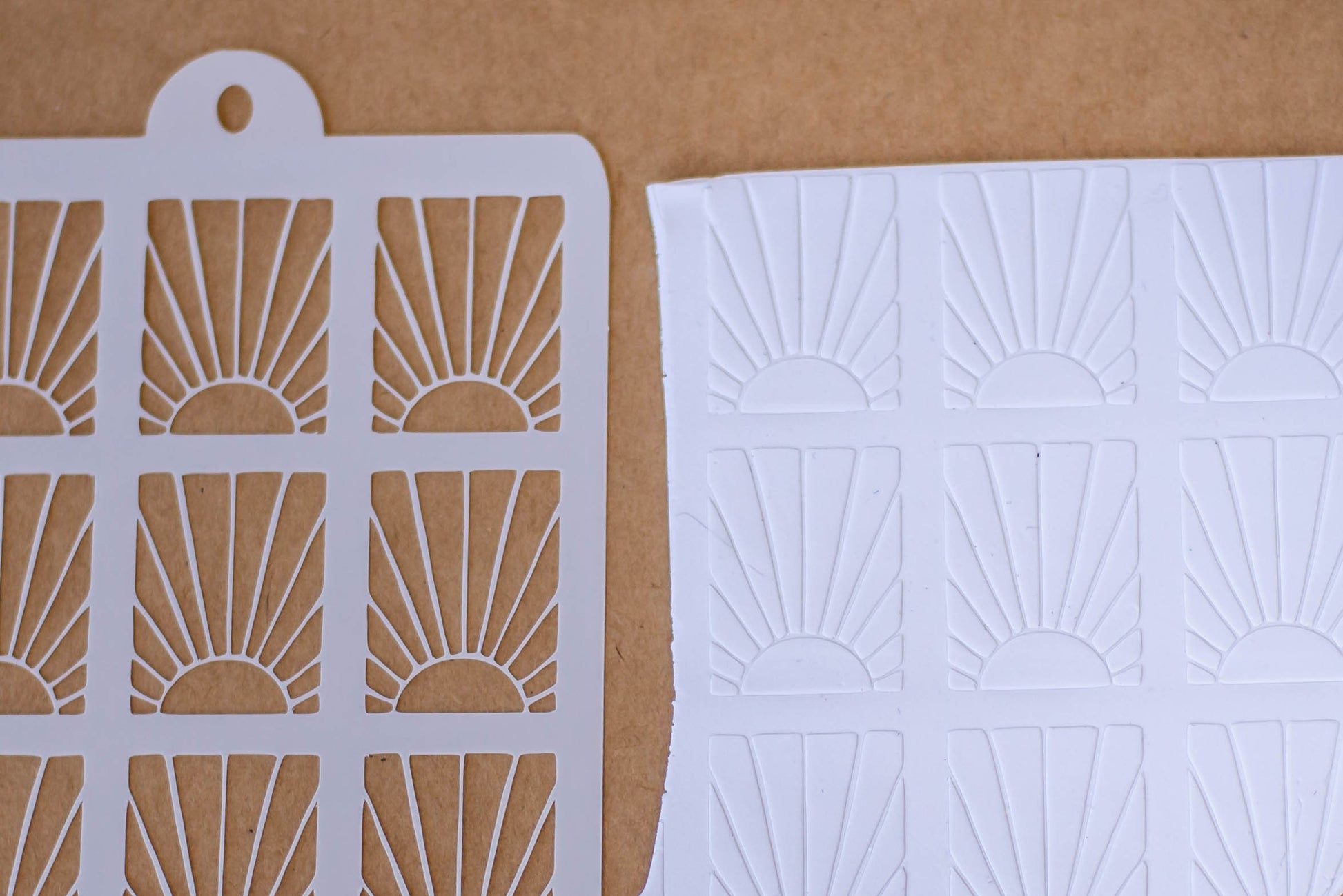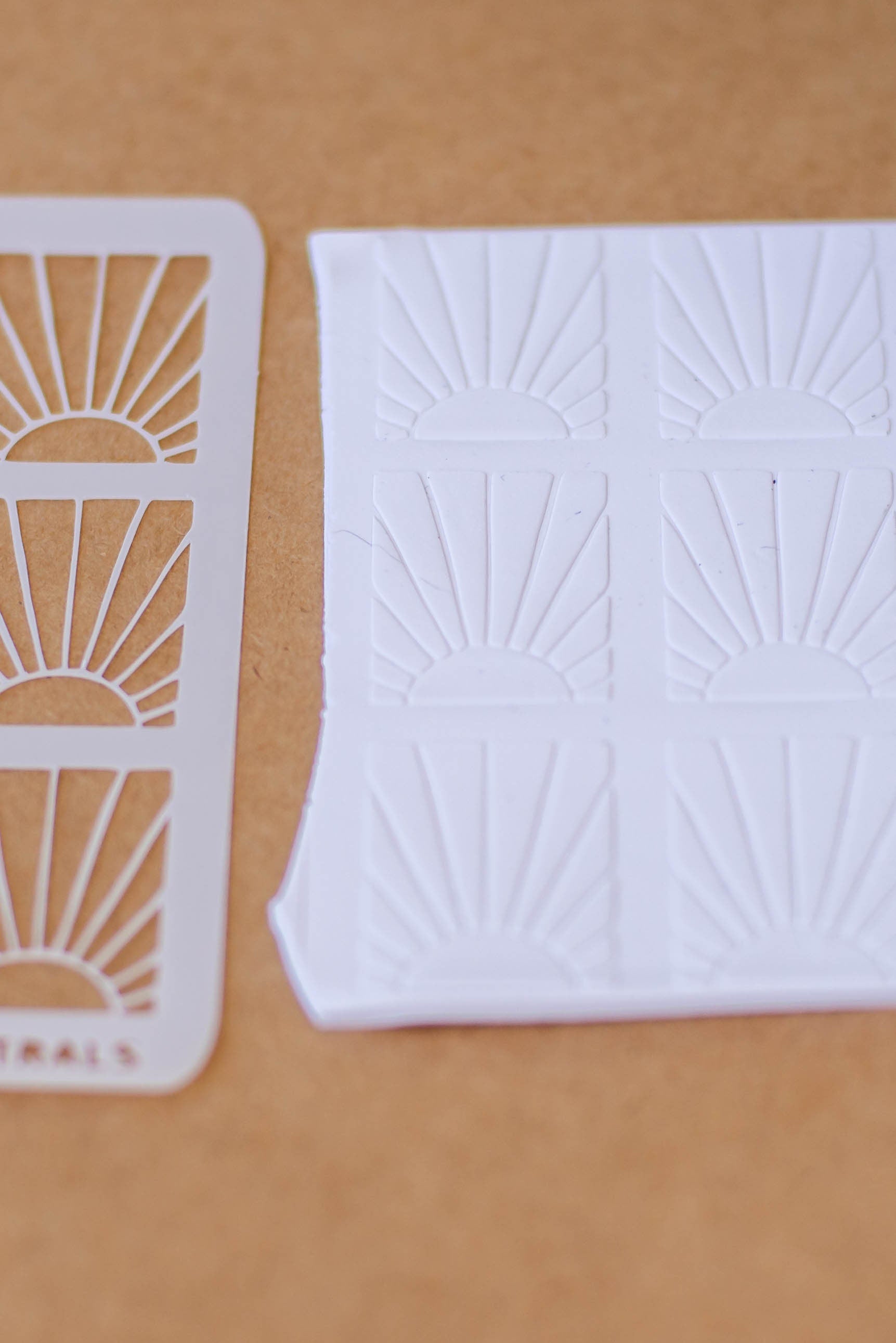 Hey there Maker, you're going to love using our clay stencils to add gorgeous texture to your art. Use the stencil to roll texture onto your clay slab, add color with mica powder or pastels, or do both! Then use our sharp clay cutters to create the perfect earrings