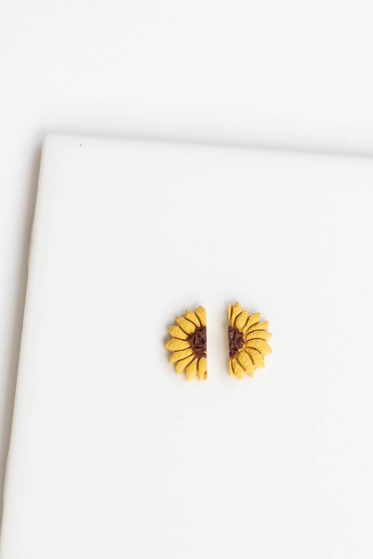 If you are looking for beautiful, lightweight jewelry, then these sunflower stud earrings will make your day! Our earrings are a perfect addition to any outfit and are especially lightweight for easy wearing. Our clay is carefully chosen and baked to provide some flexibility, making your earrings more durable.
