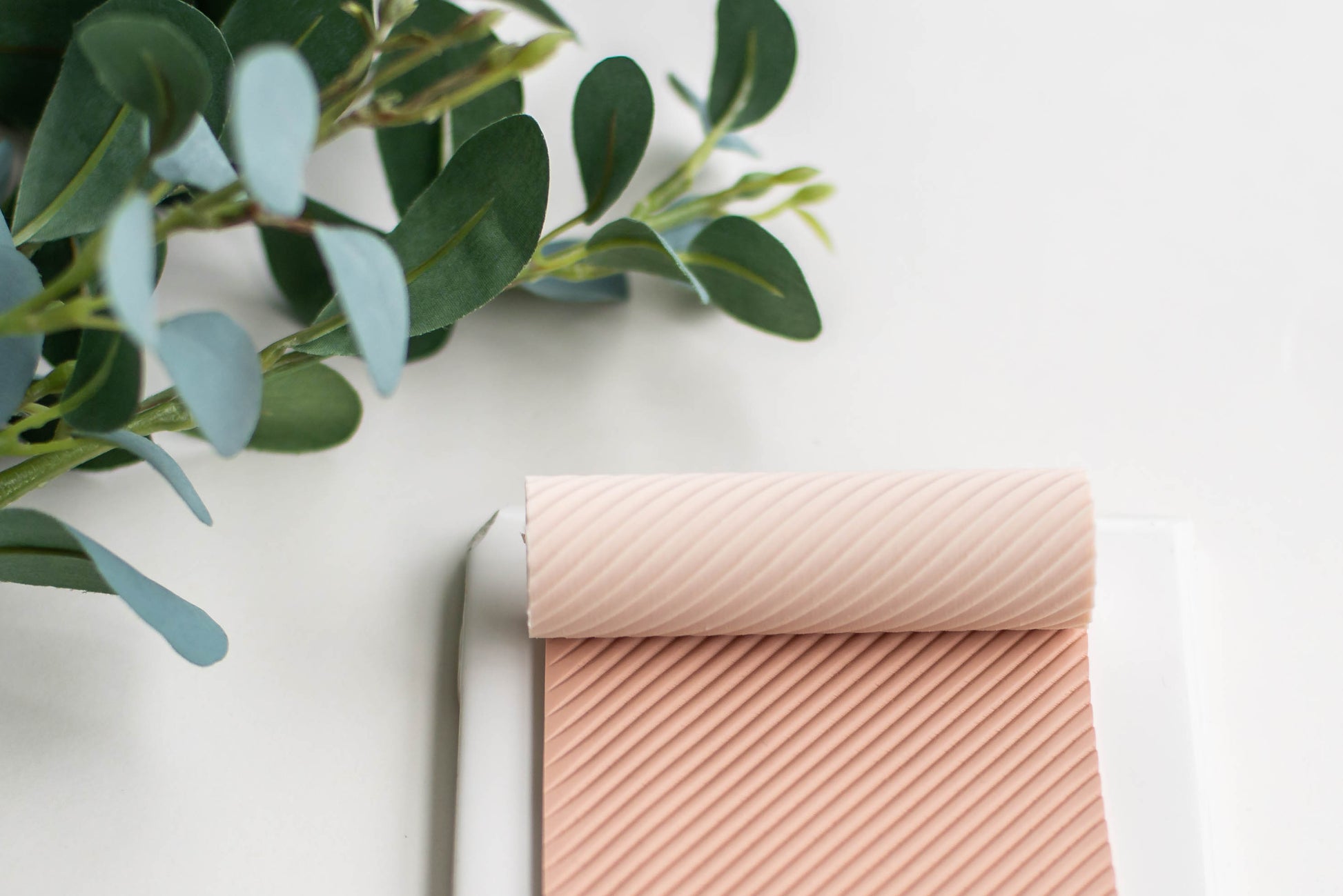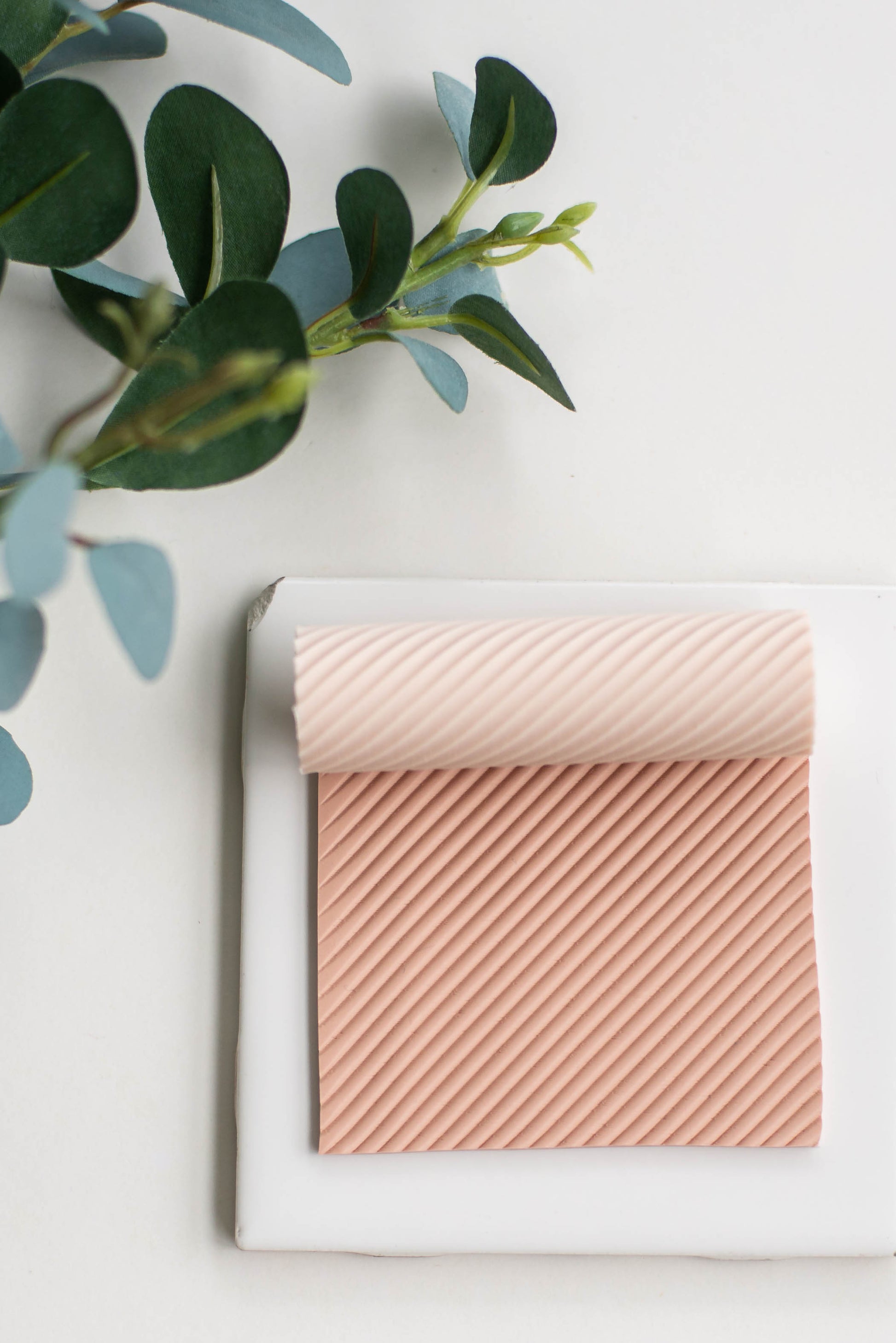 Ensure your clay is not sticky, using firm pressure, roll down your slab of clay to reveal a beautiful texture