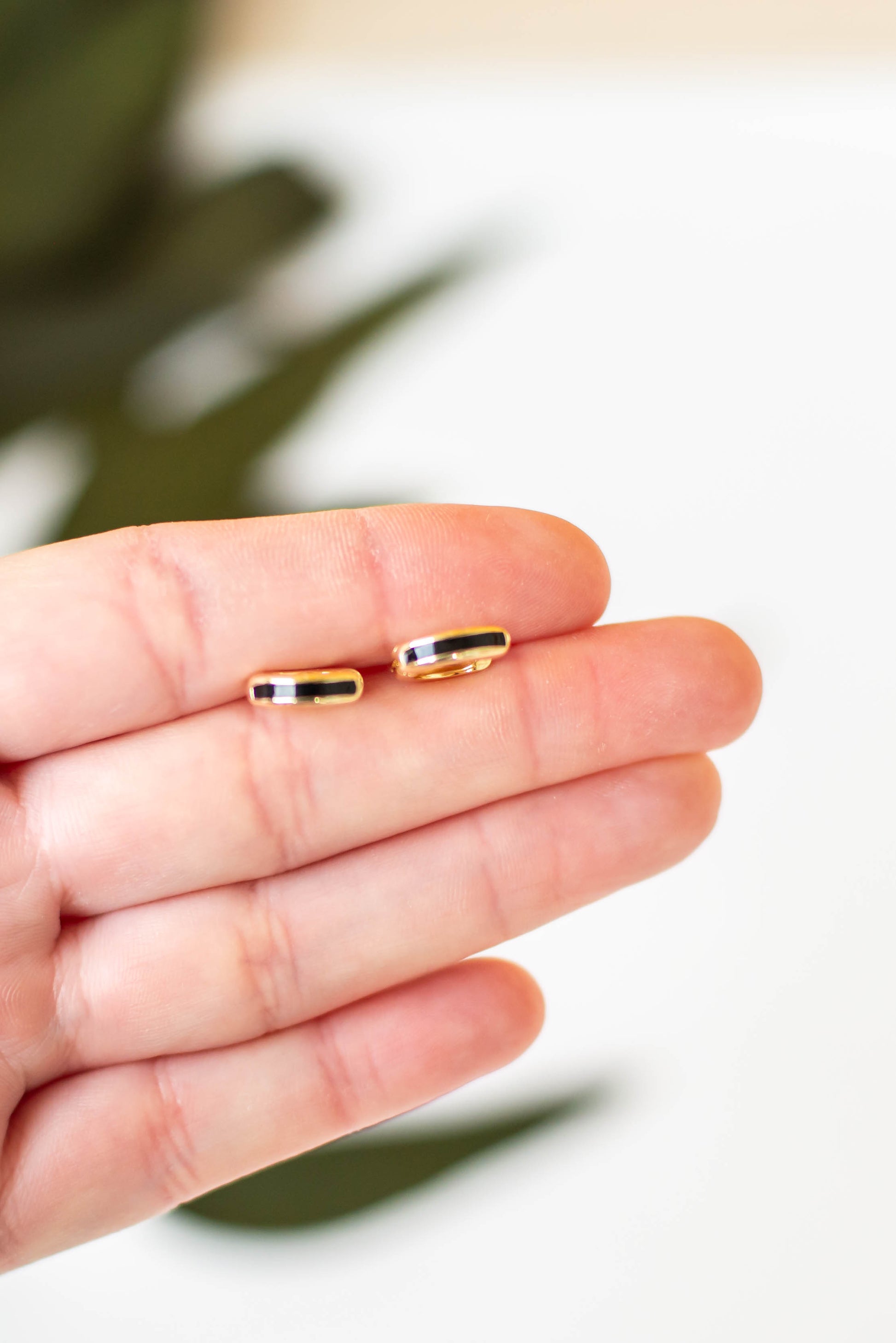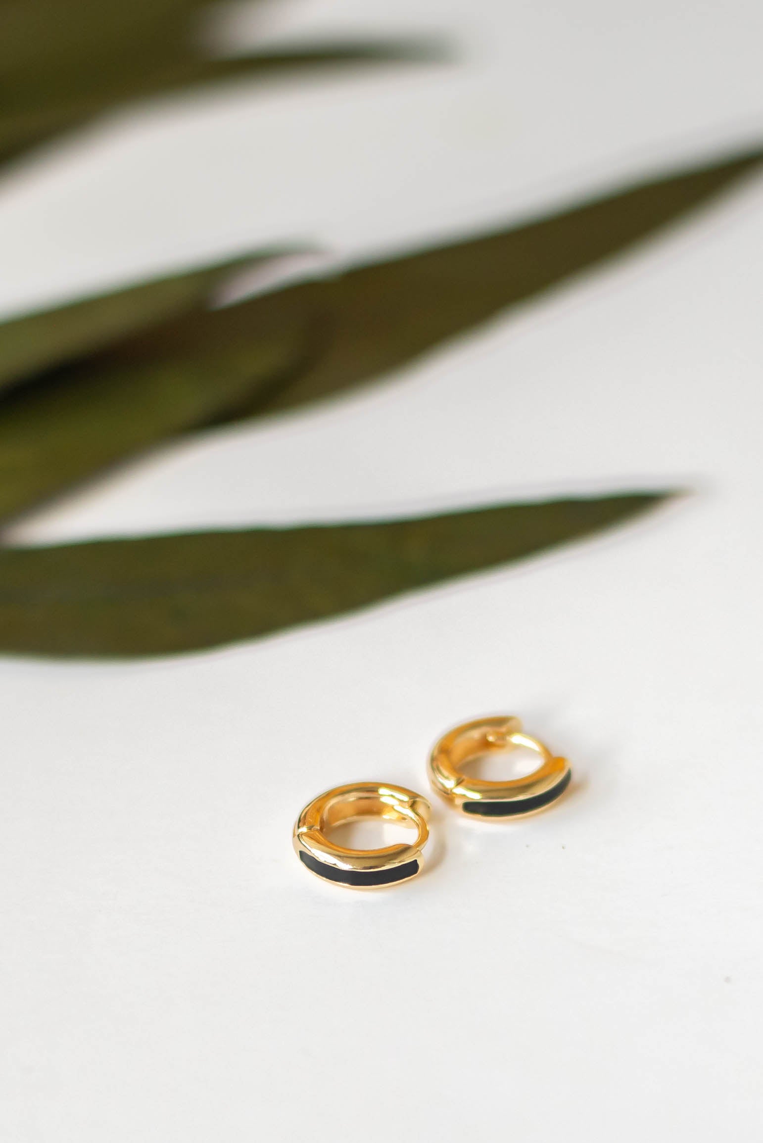 If you are looking for beautiful, lightweight jewelry, then these tiny gold and black huggies will make your day! Our earrings are a perfect addition to any outfit and are especially lightweight for easy wearing.