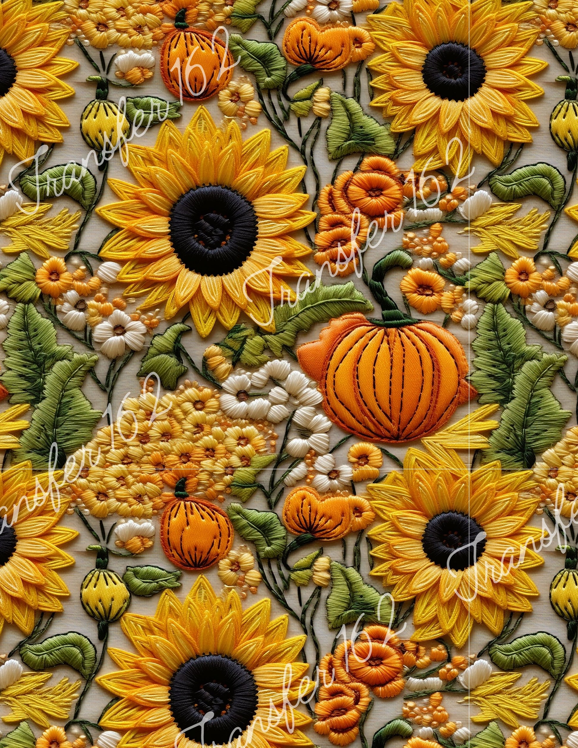 TP162 Embroidered Sunflower and Pumpkin Transfer Image