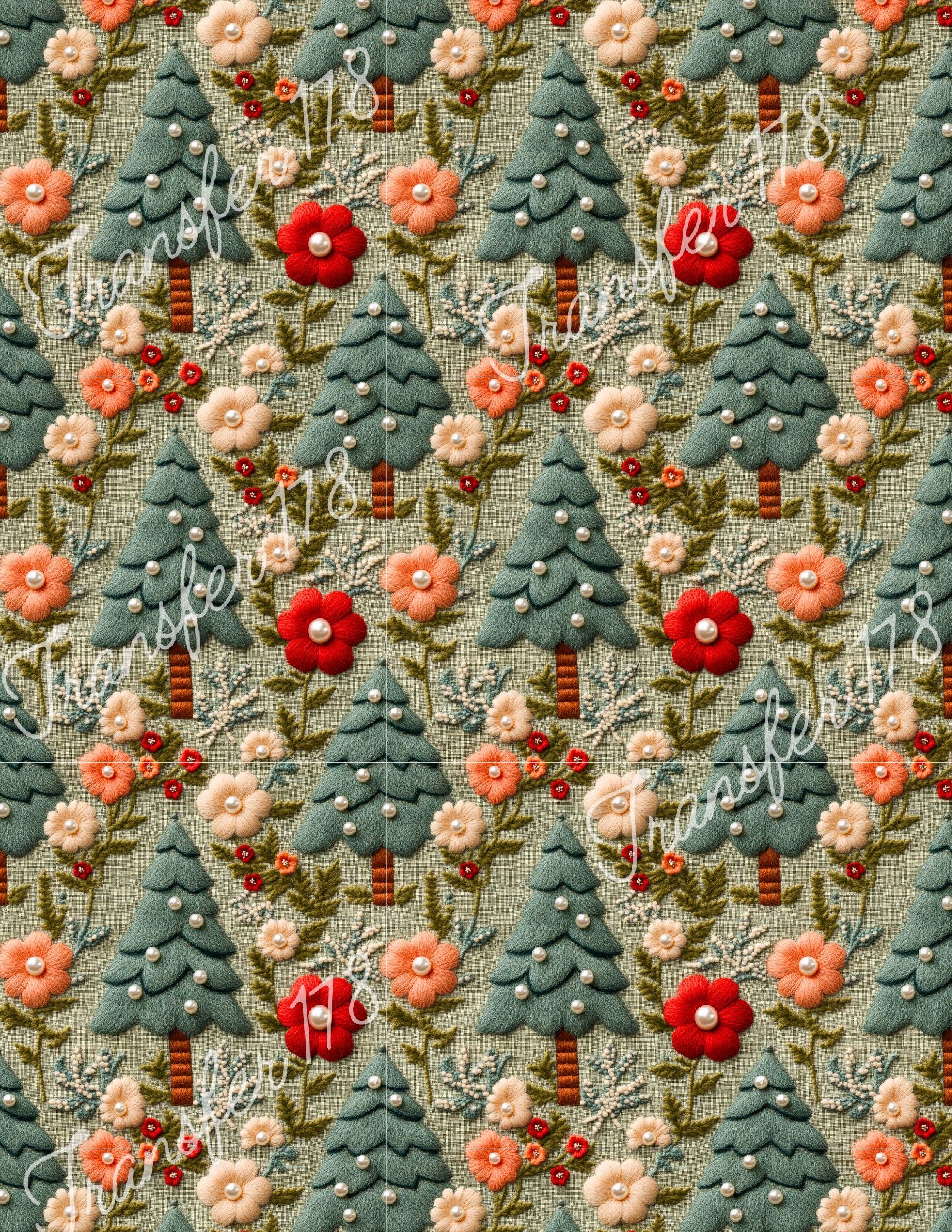 TP178- Embroidered Look Christmas Tree Transfer for Clay