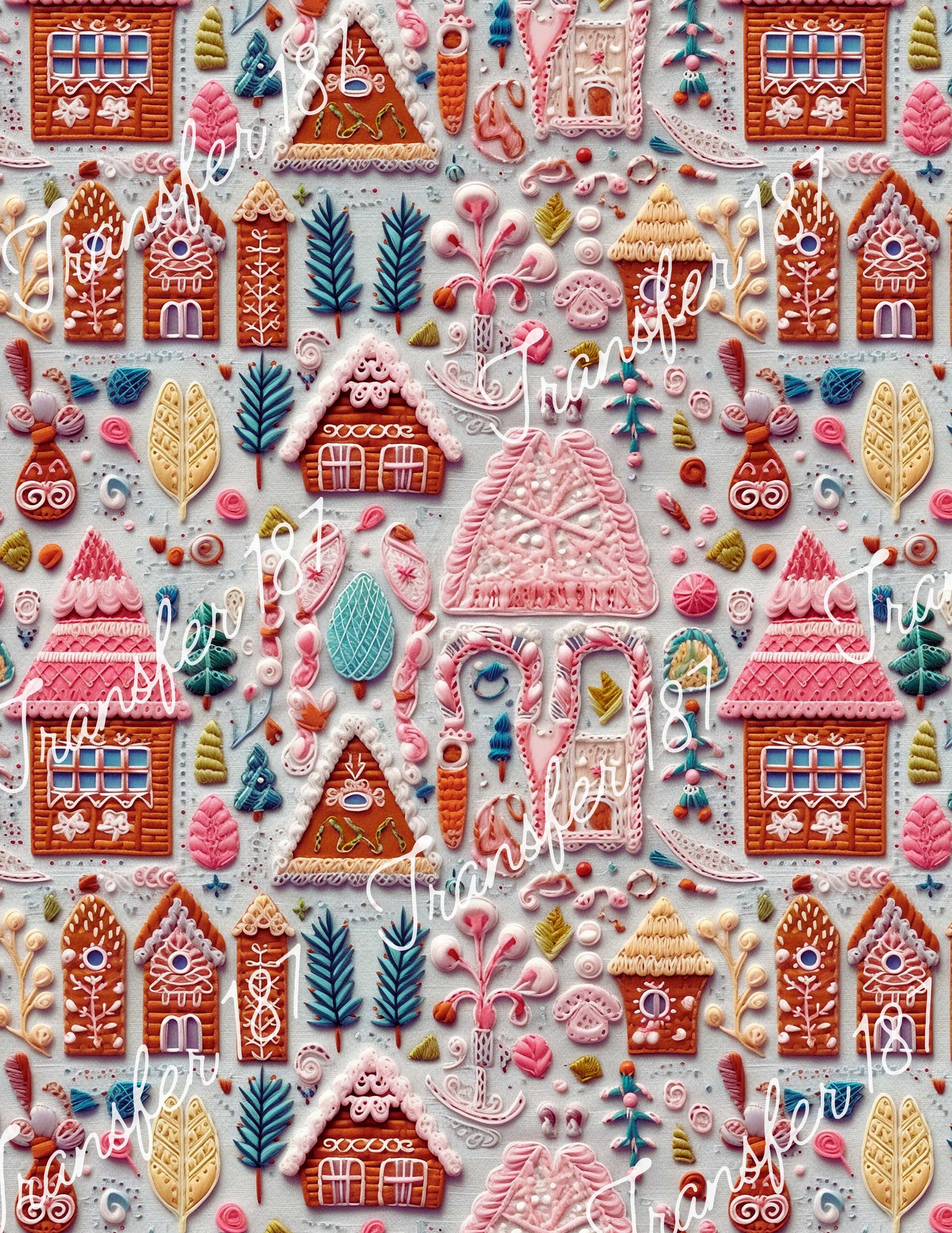 TP187 | Pink Christmas Gingerbread House Transfer