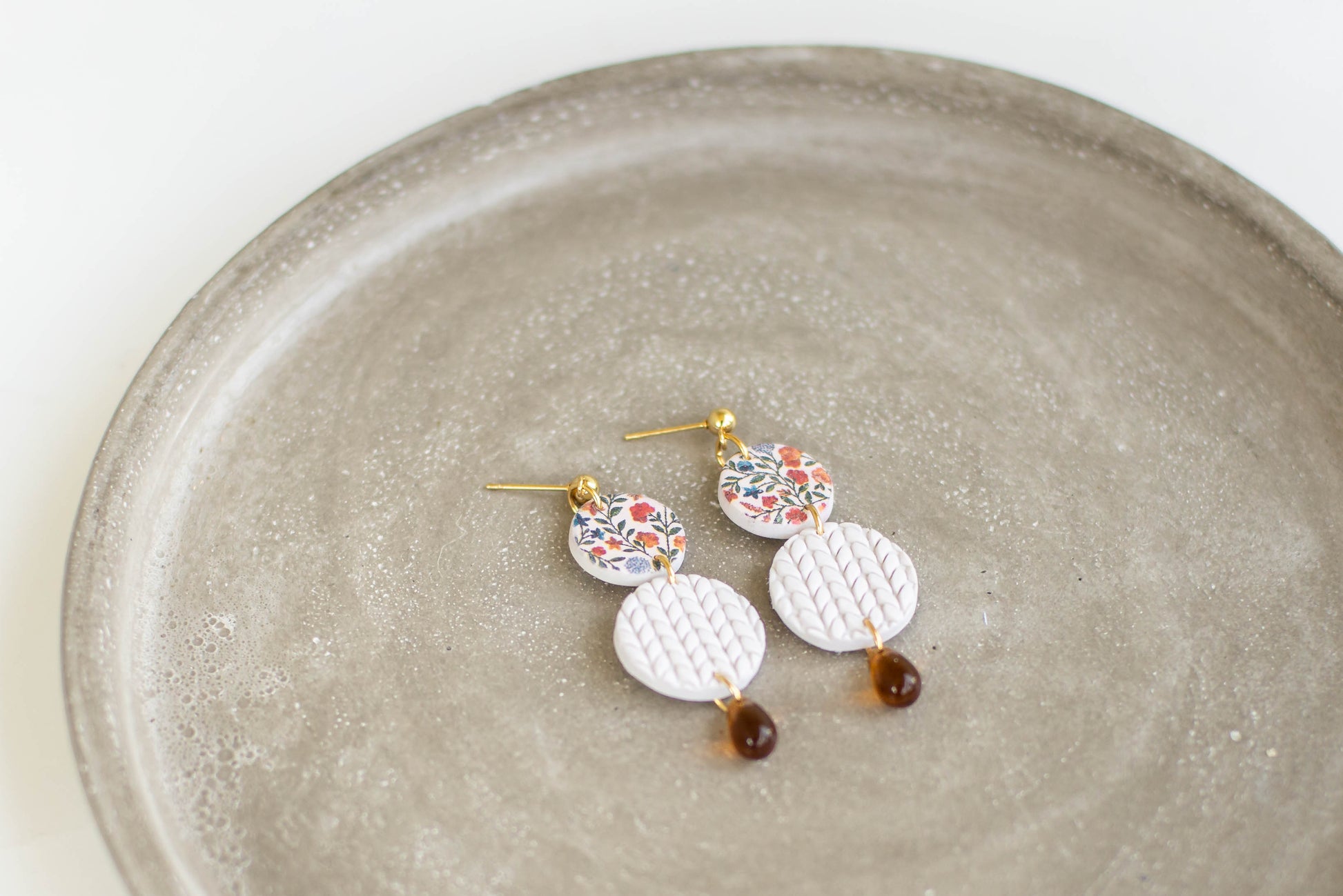 If you are looking for beautiful, lightweight jewelry, then these vintage floral clay earrings will make your day! Our earrings are a perfect addition to any outfit and are especially lightweight for easy wearing. Our clay is carefully chosen and baked to provide some flexibility, making your earrings more durable.